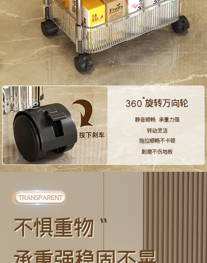 • 높은 투명도 - 3겹 [대형] 바퀴 4개 + [걸이바구니]가 포함되어 더욱 편리합니다.