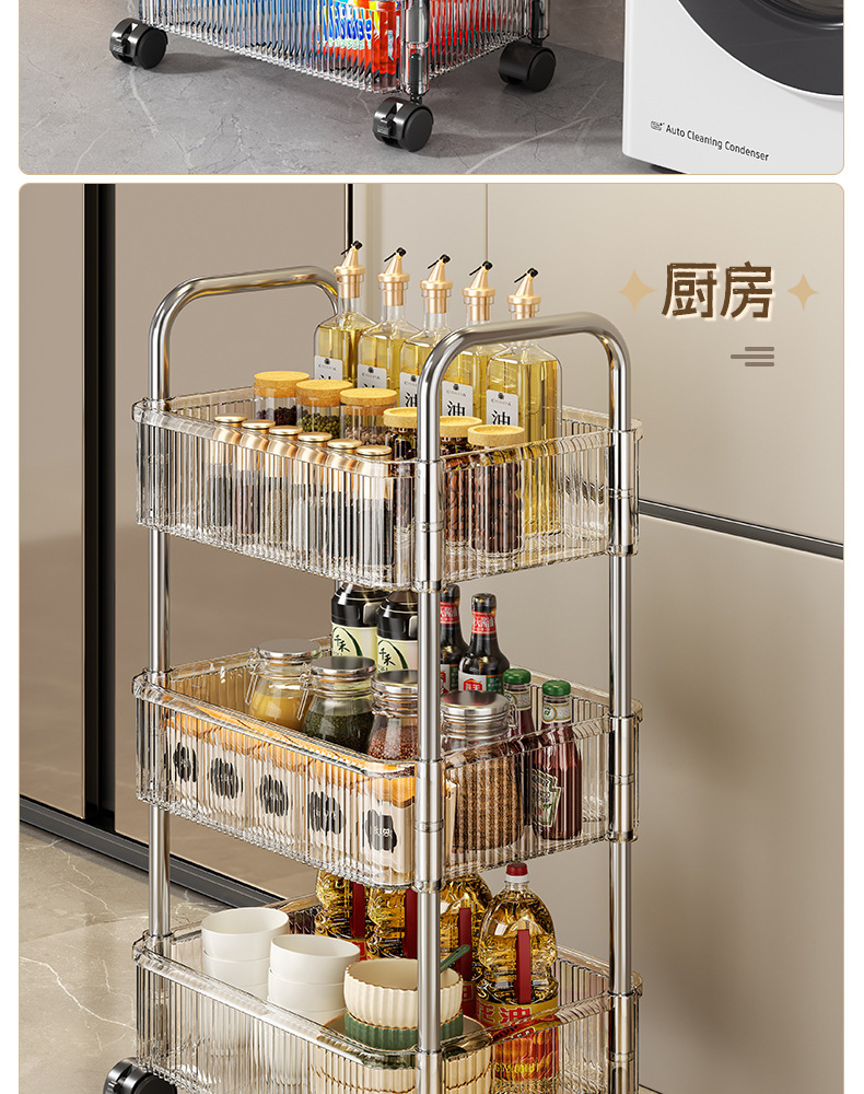 • 나노 업그레이드 두꺼운 버전❤고투명 - 3단[대형]바퀴4개+걸이바구니