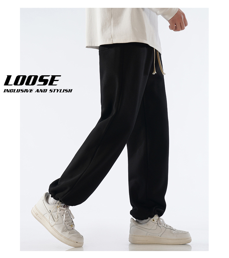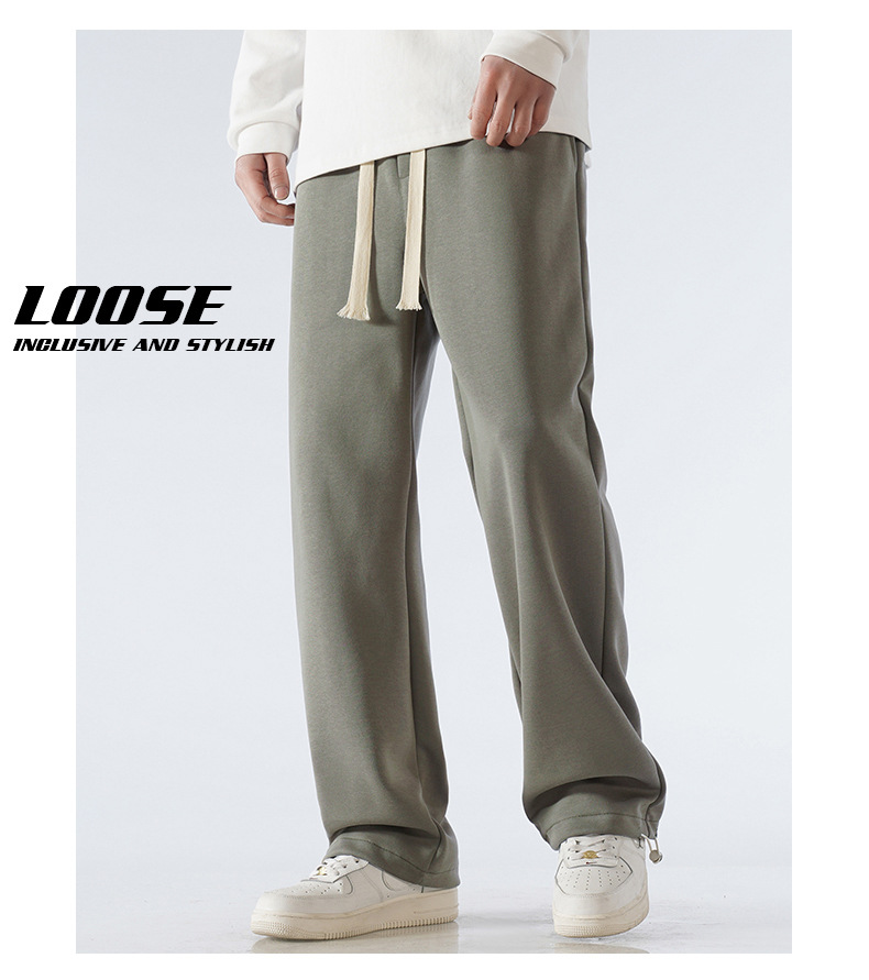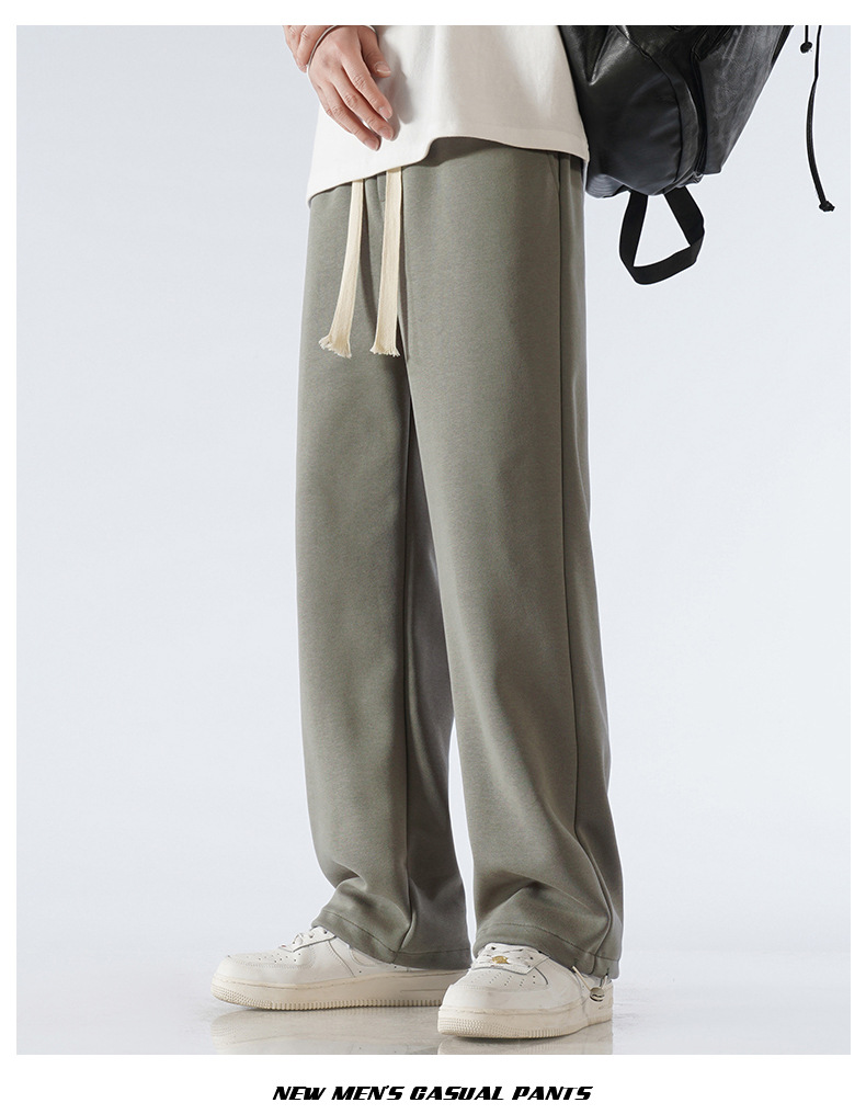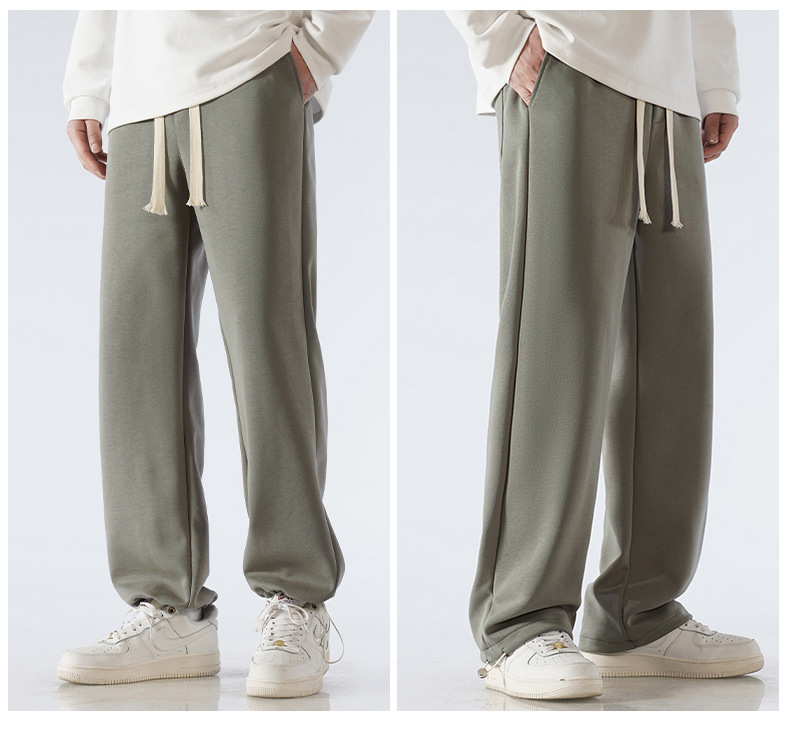 무료 배송 면화 스포츠 바지 남자 2025 봄과 가을 패션 브랜드 느슨한 스트레이트 와이드 다리 바지 Drawstring 캐주얼스토어 가기
