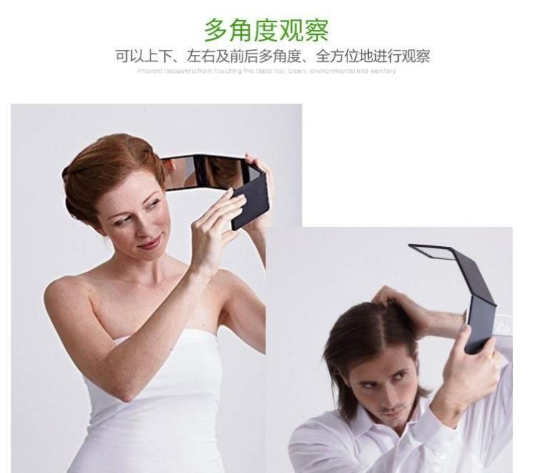백미러 화장품 거울 네면은 자신이 볼 수 있습니다 휴대용 이발 백 헤드 미러 접이식