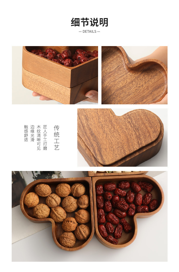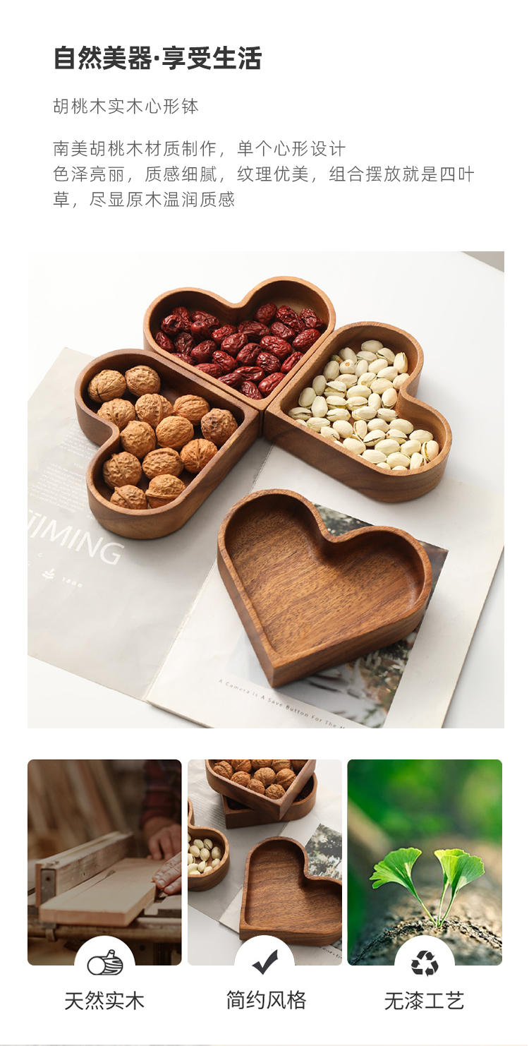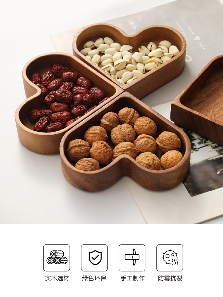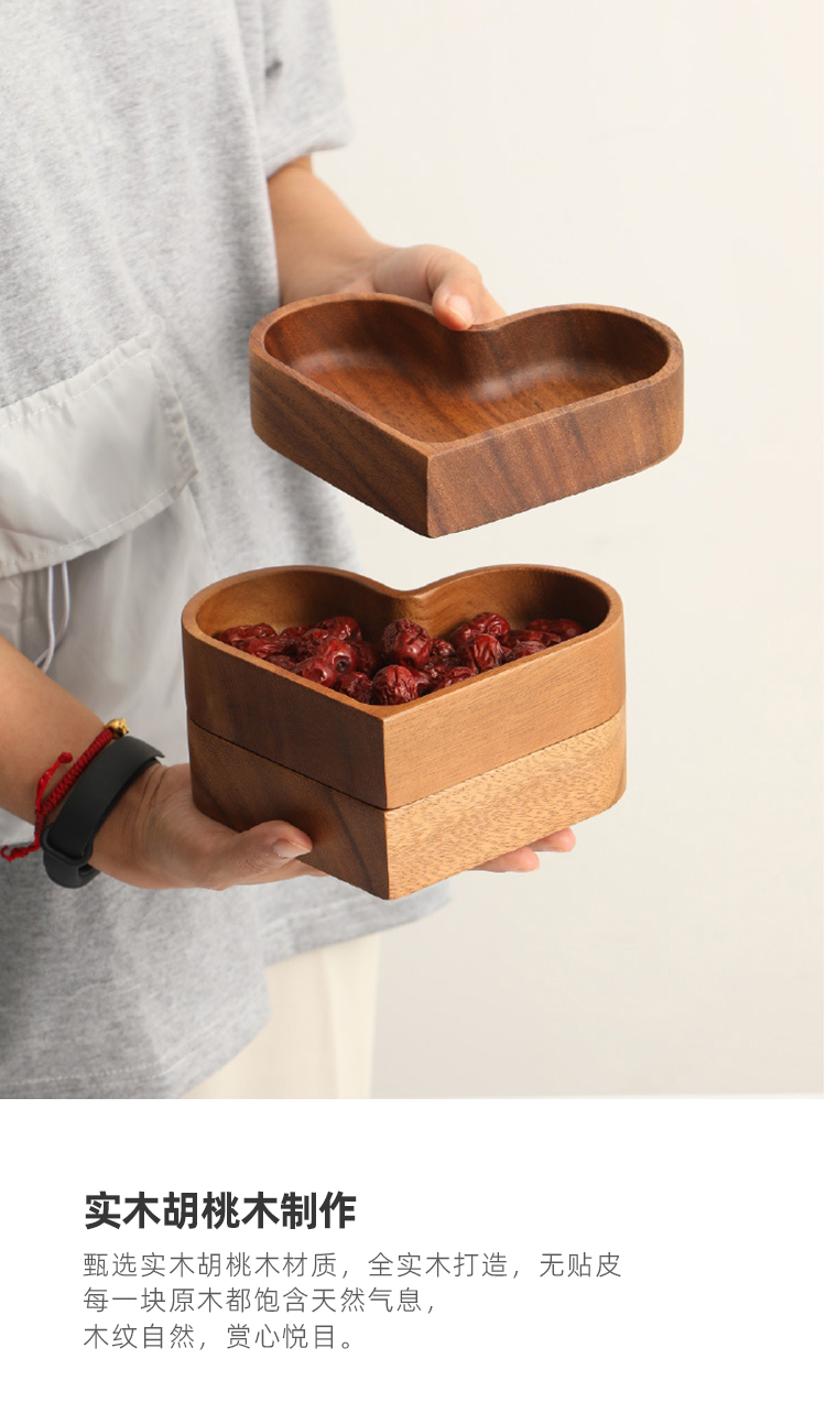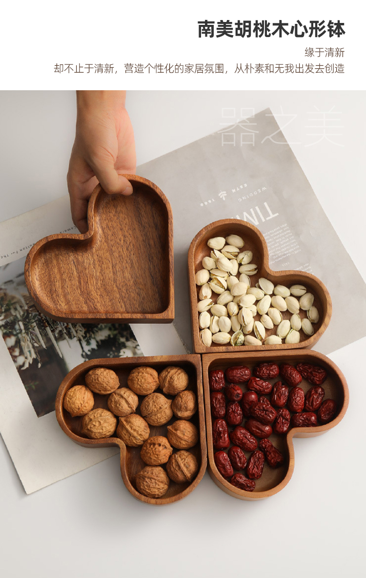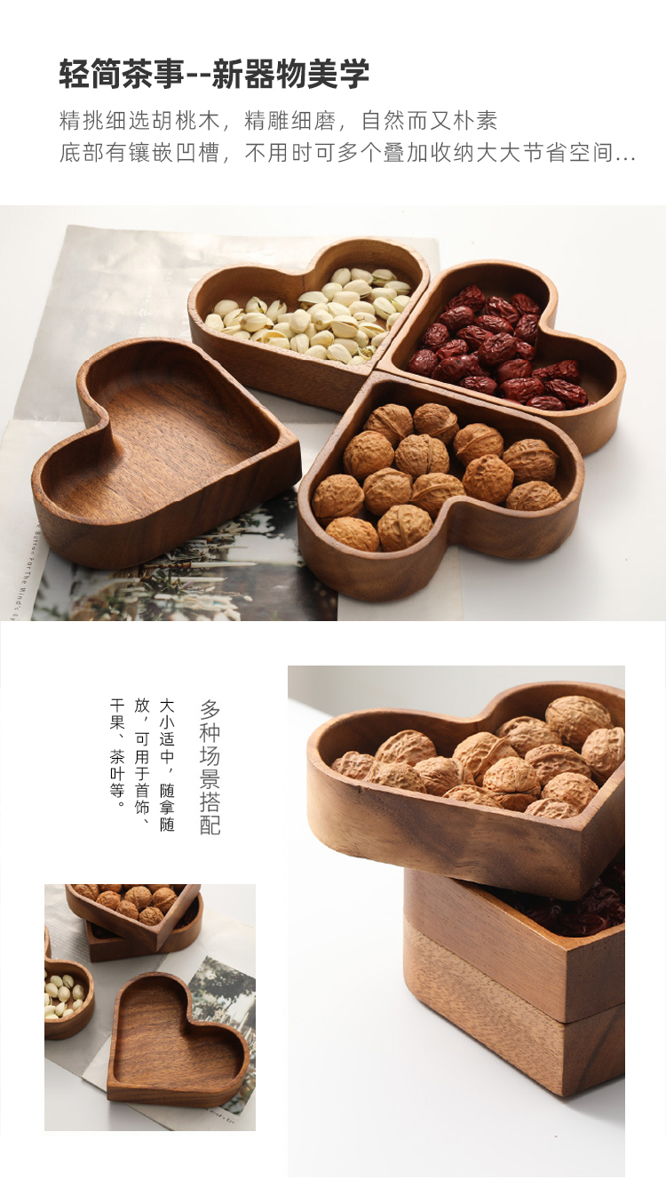 단단한 나무 하트 모양의 과일 상자 너트 플레이트 절묘한 작은 저장 중국 스타일 상쾌한 말린 과일 플레이트 창조적 인 사탕 접시 호두