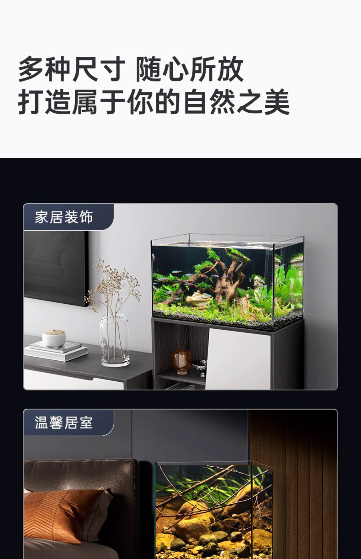 초백색 어항 금결정 유리 거실용 대형 및 소형 직사각형 가정용 수초 및 거북이 어항 계류 수경 생태 조경스토어 가기