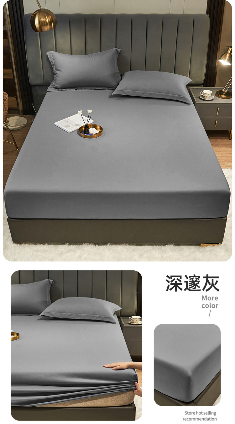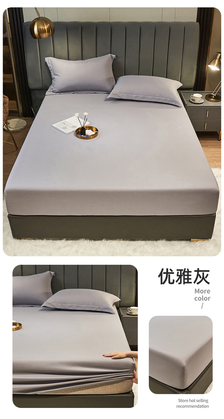 호텔 싱글 피스 침대 모자 단색 80 순수한면 새틴 침대 세트 화이트 침대 스커트 호텔 침대 커버 린넨 스프링 용해스토어 가기
