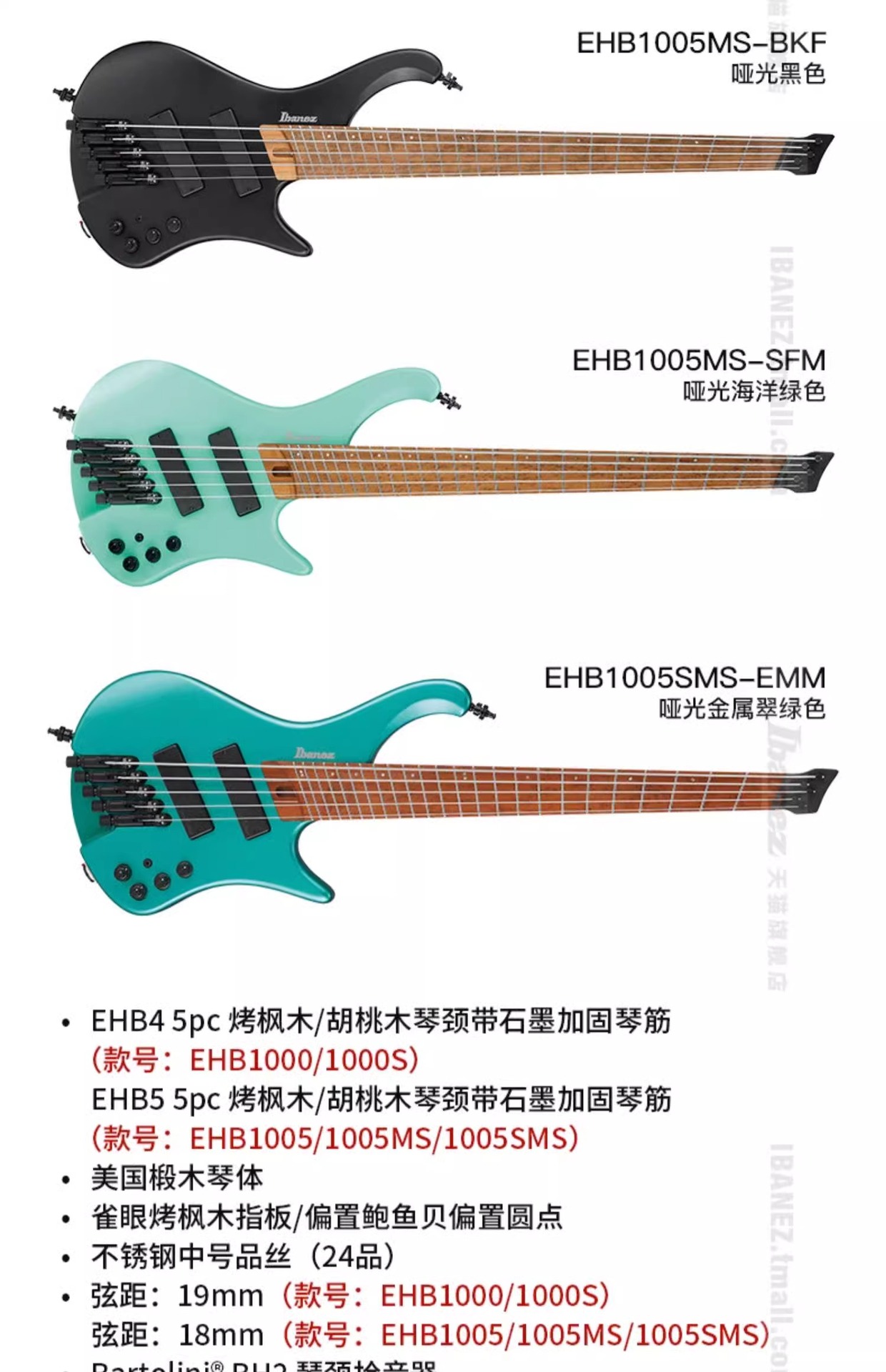 Ibanez 공식 플래그십 스토어 Ibana EHB1005/EHB1005MS 팬 헤드리스 전기베이스