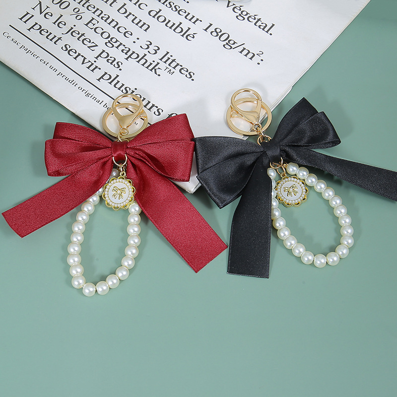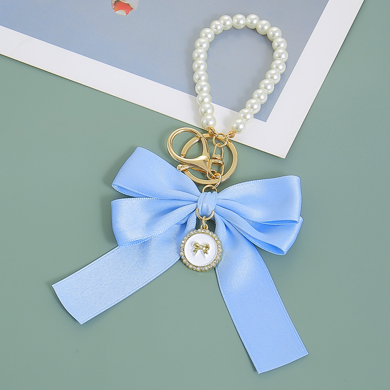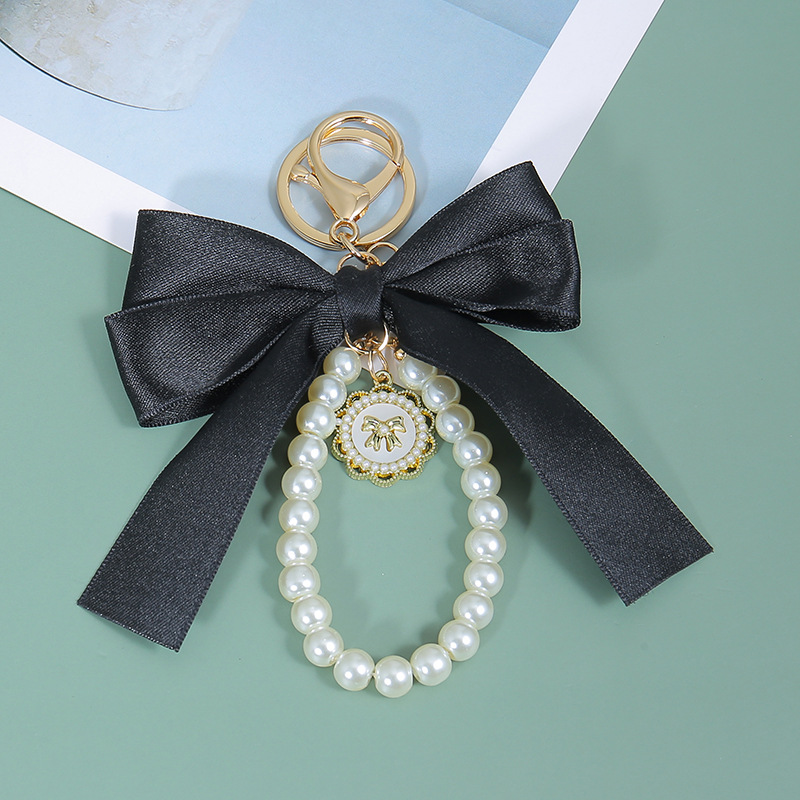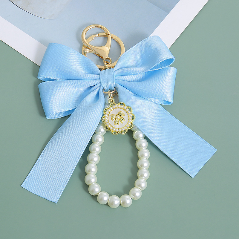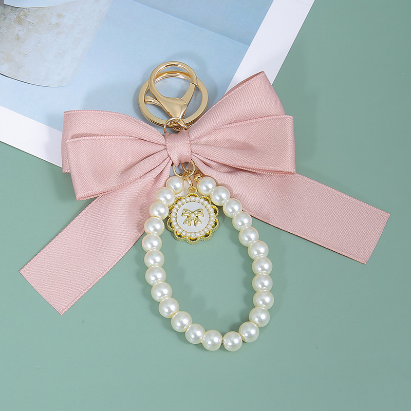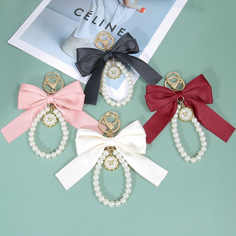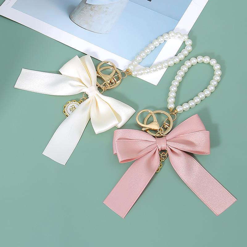 창조적 인 활 진주 체인 키 체인 여성 패션 가방 펜던트 자동차 키 체인 독특한 리본 활 타이