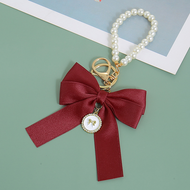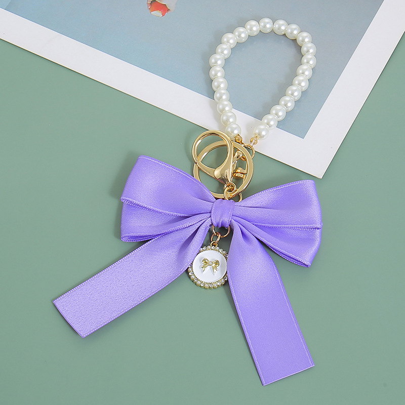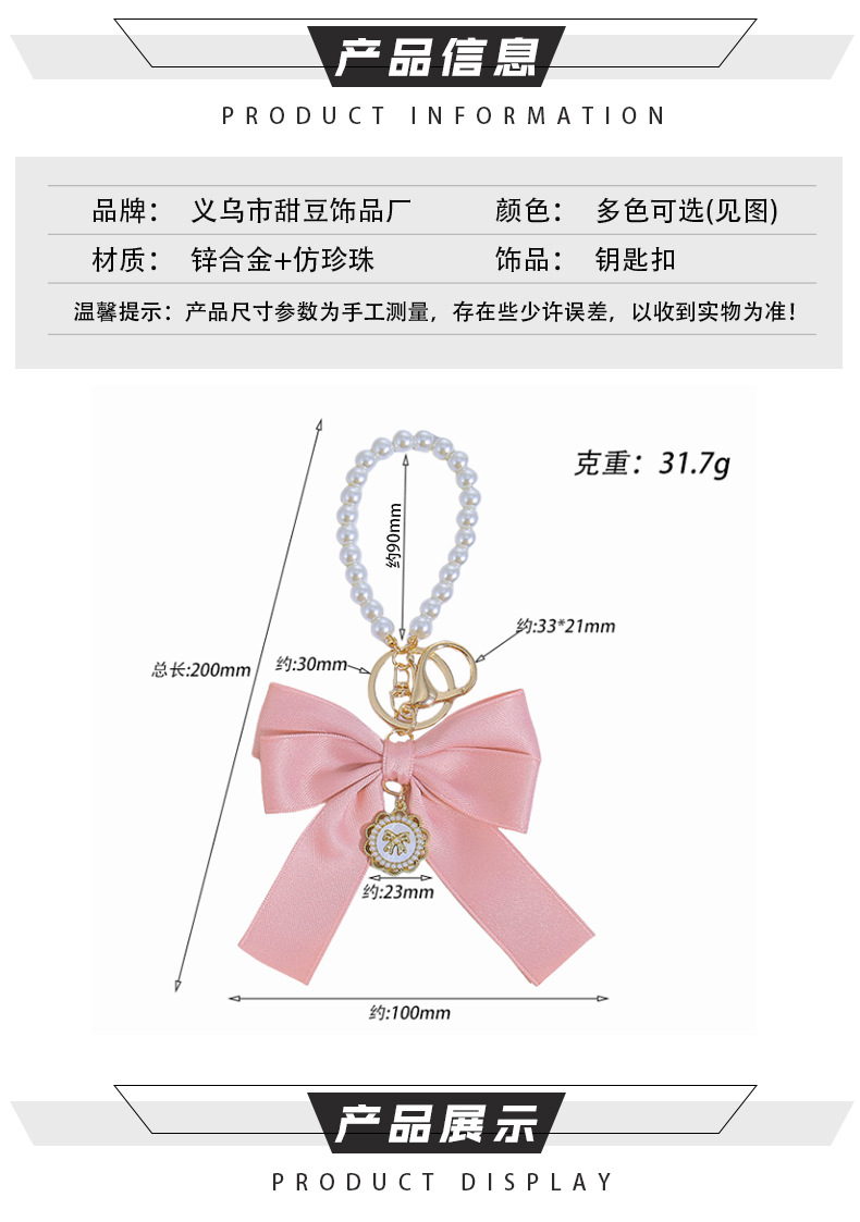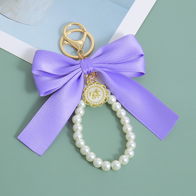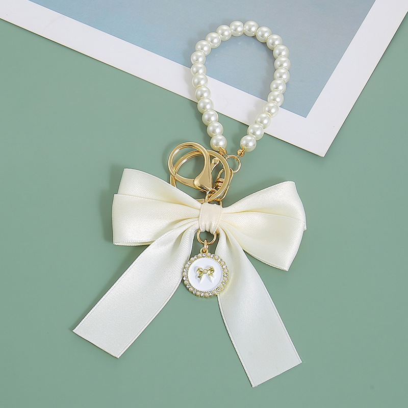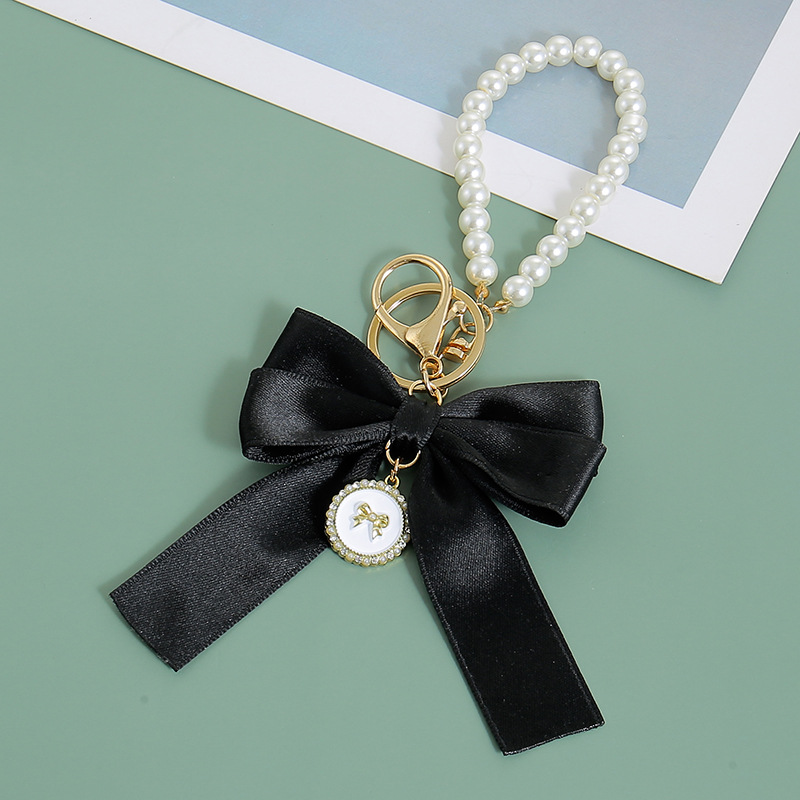 창조적 인 활 진주 체인 키 체인 여성 패션 가방 펜던트 자동차 키 체인 독특한 리본 활 타이