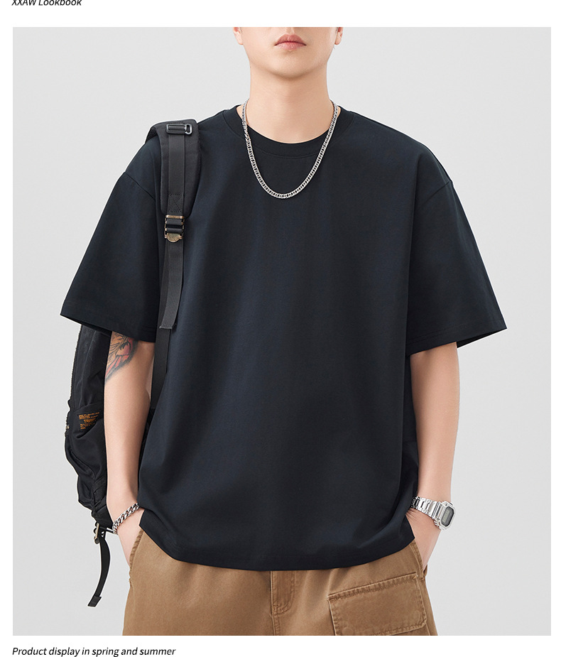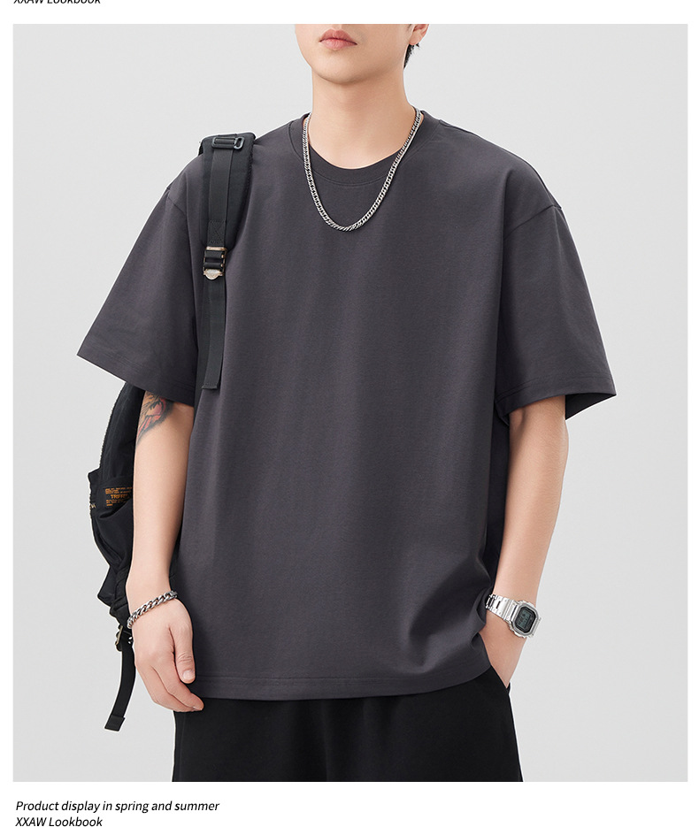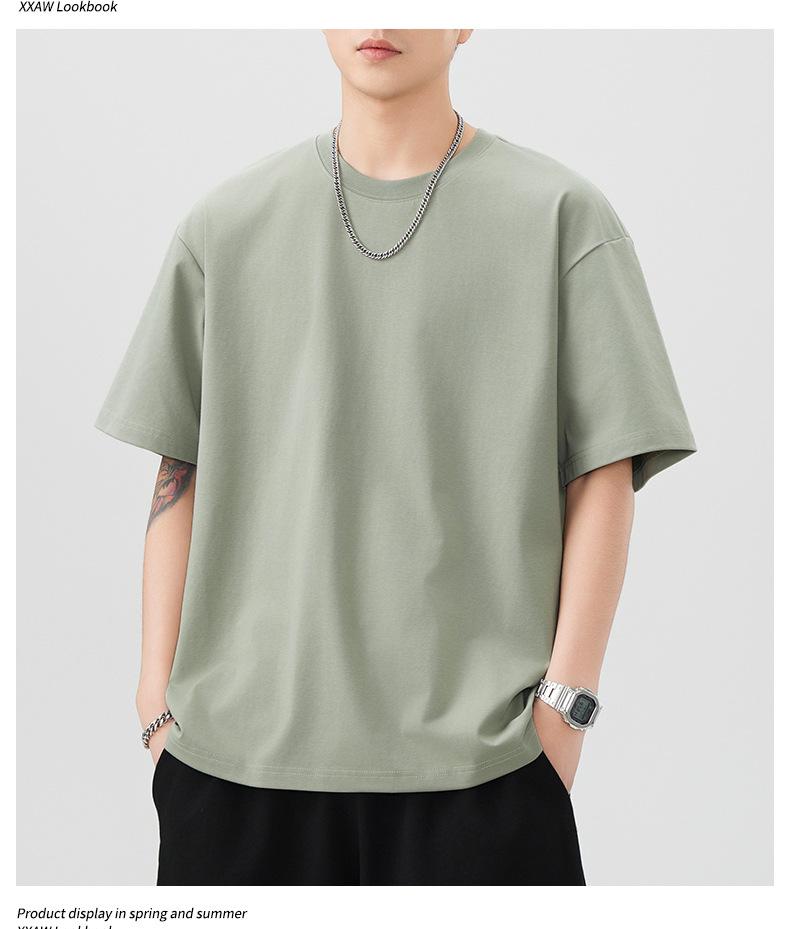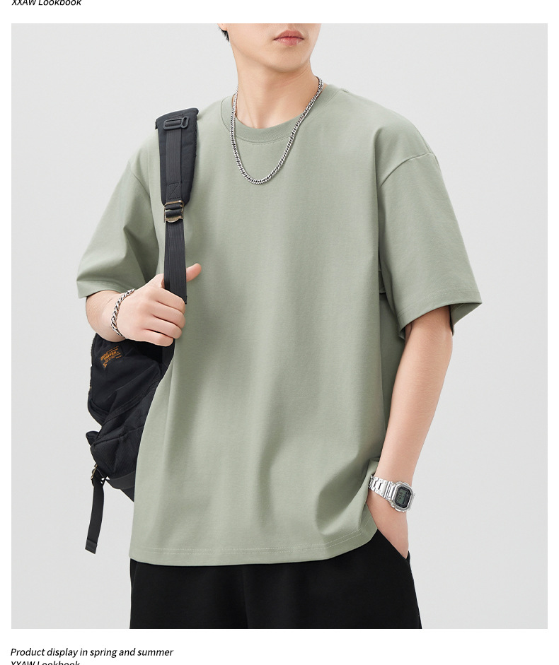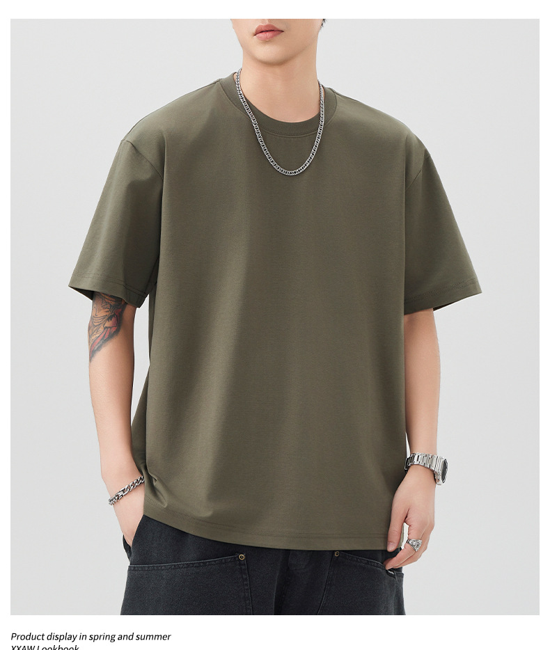 Muqiu 남성복 ∠ 여름 쿨 솔리드 컬러 스택 반팔 티셔츠 남성과 여성의 느슨한 피부 친화적 인 반소매베이스 셔츠 티셔츠
