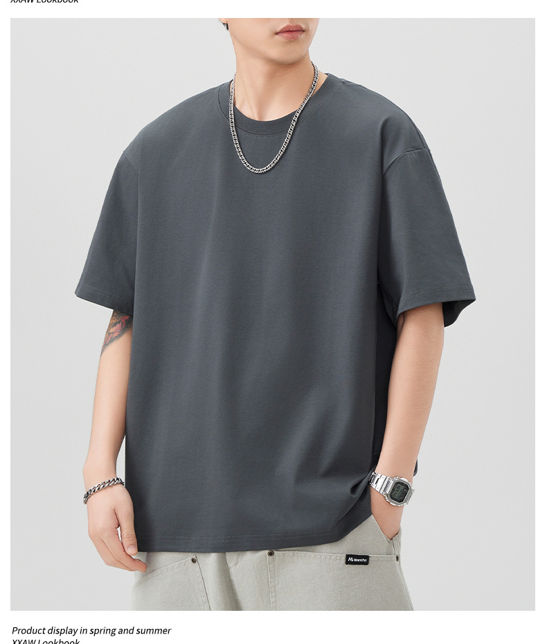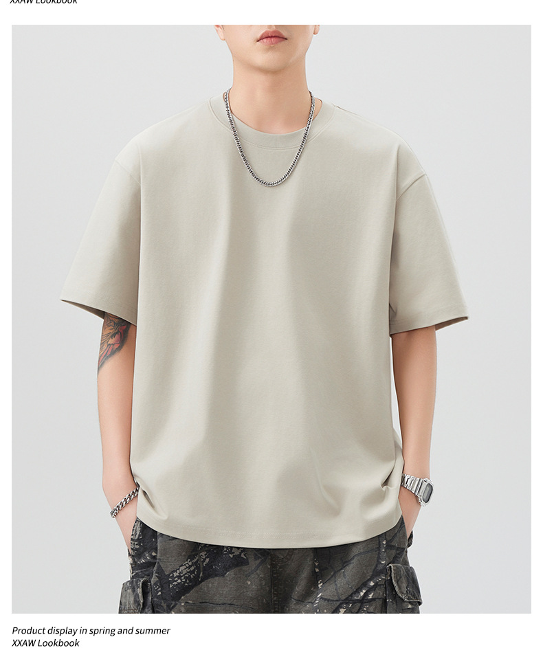 Muqiu 남성복 ∠ 여름 쿨 솔리드 컬러 스택 반팔 티셔츠 남성과 여성의 느슨한 피부 친화적 인 반소매베이스 셔츠 티셔츠스토어 가기