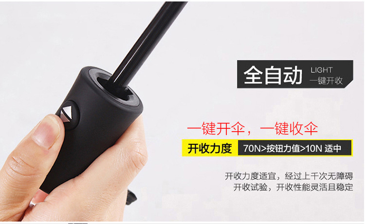 • 검은색 손잡이가 달린 전자동 흰색 우산