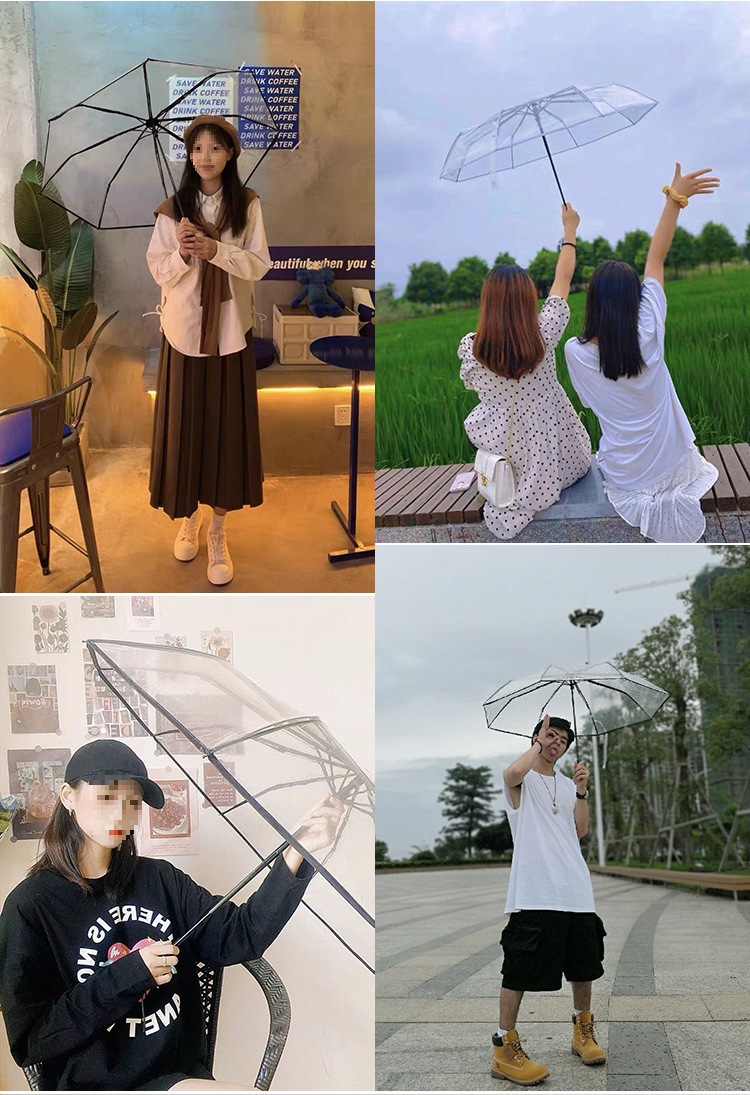 투명 우산 접이식 완전 자동 투명 3 배 우산은 광고 로고 광고 우산 공장 공급을 인쇄 할 수 있습니다스토어 가기