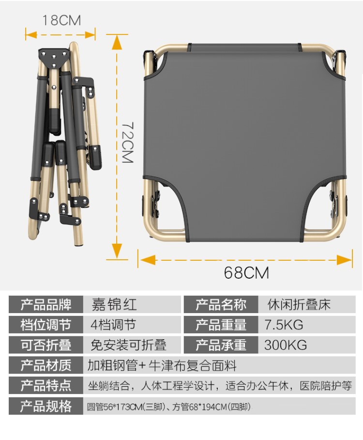 4I 접이식 침대 싱글 점심 휴식 낮잠 침대 홈 Recliner 3 월 간단한 휴대용 사무실 성인 병원 동반스토어 가기