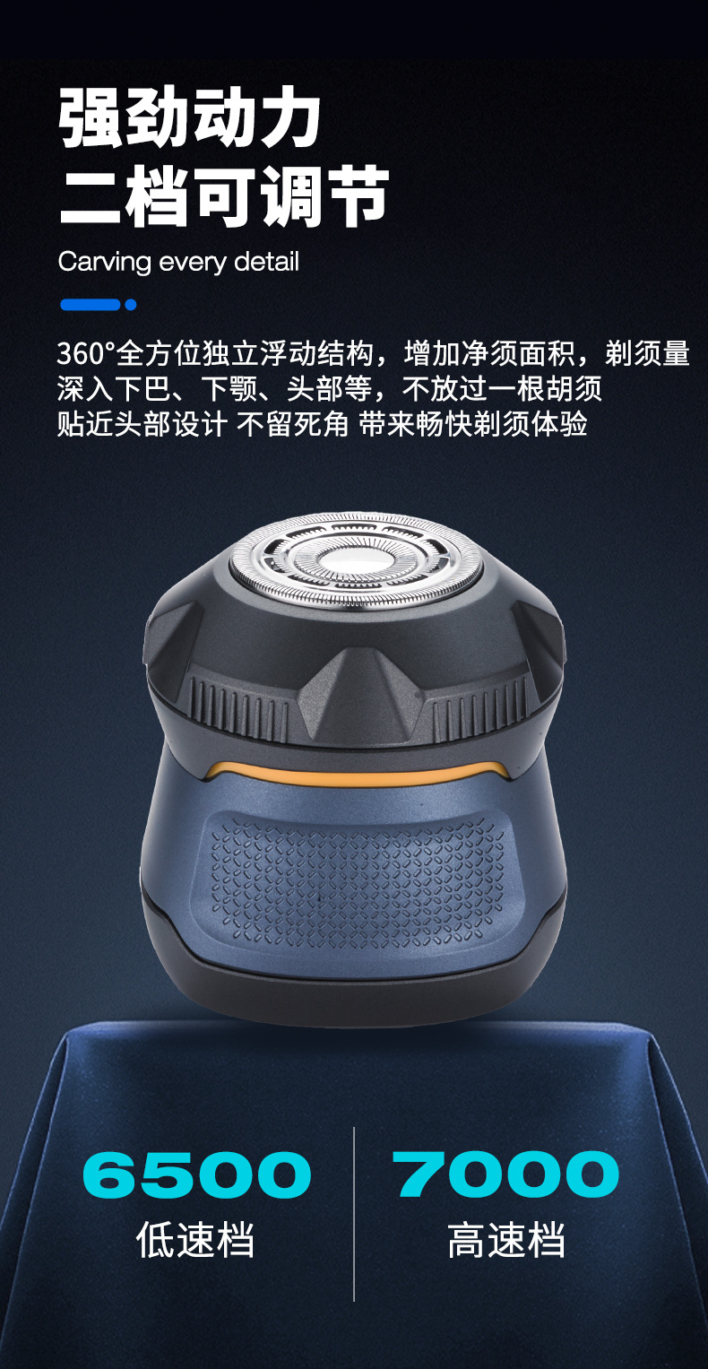 3:强劲动力,二档位转速调节,剃头无残留