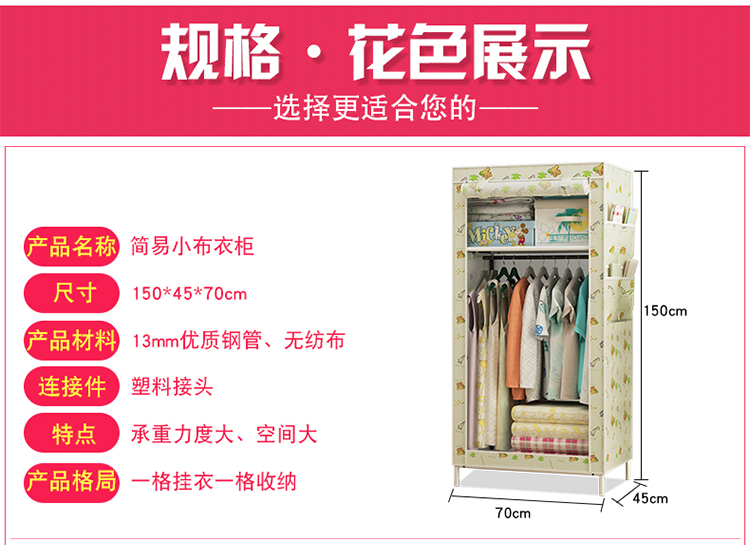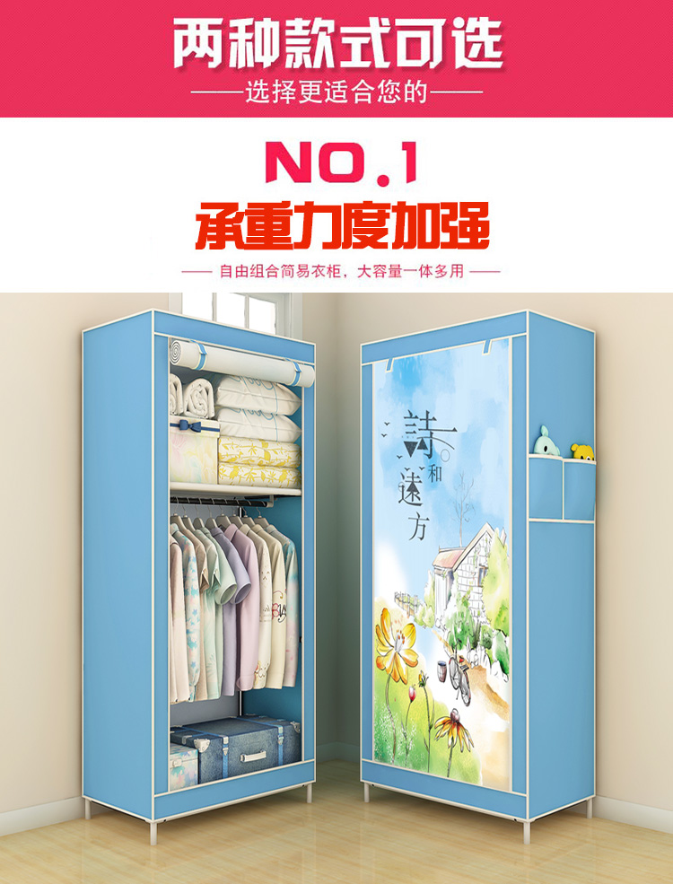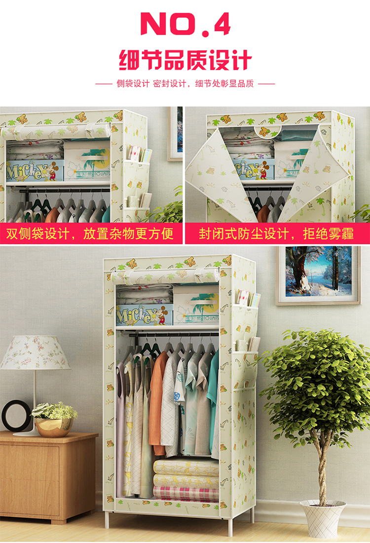 W8 Kady 간단한 옷장 조합 방진 완전 폐쇄 미니 옷장 옷걸이 강철 프레임 강화 학생 단일 옷스토어 가기