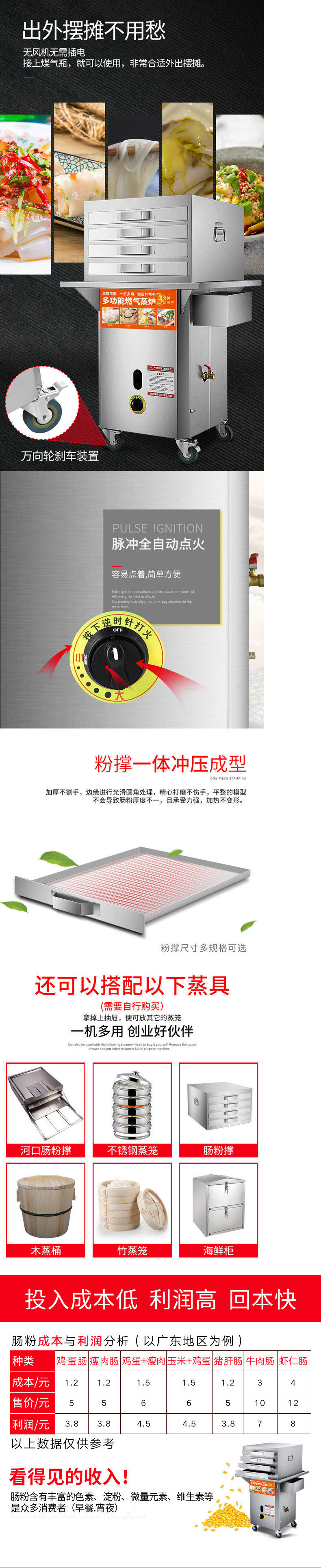 쌀 롤 기계 완전 자동 올인원 기계 포장 마차의 완전한 세트 아침 식사 상업용 분말 증기선 가스 전기 증기선 완전한 세트스토어 가기