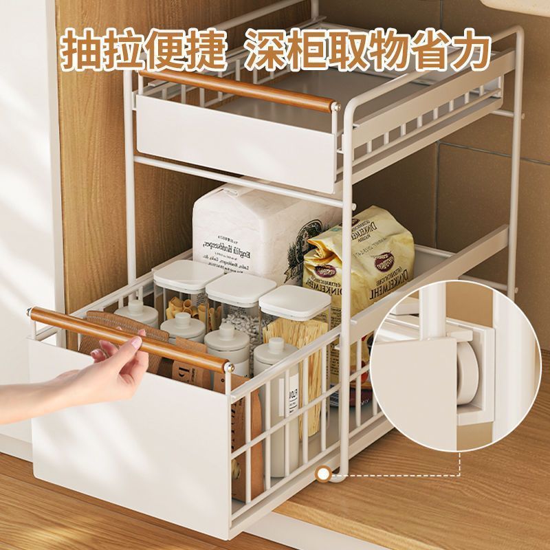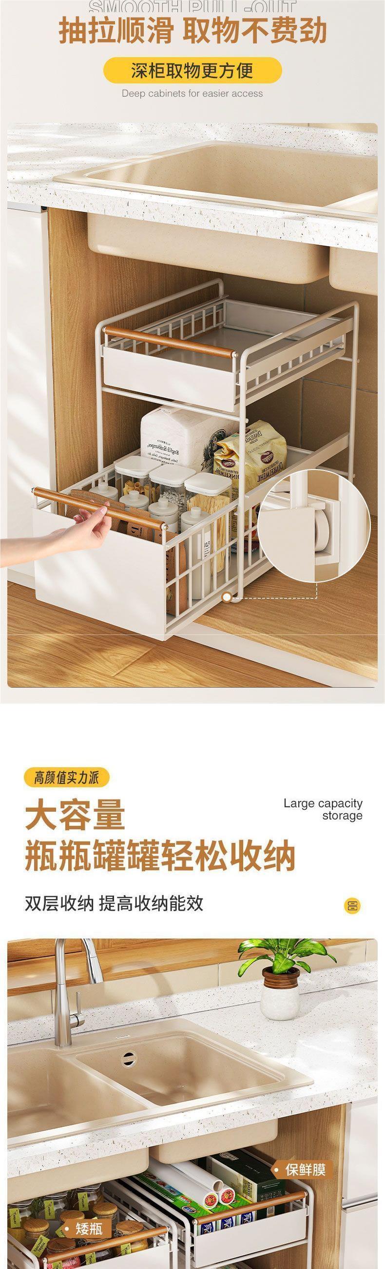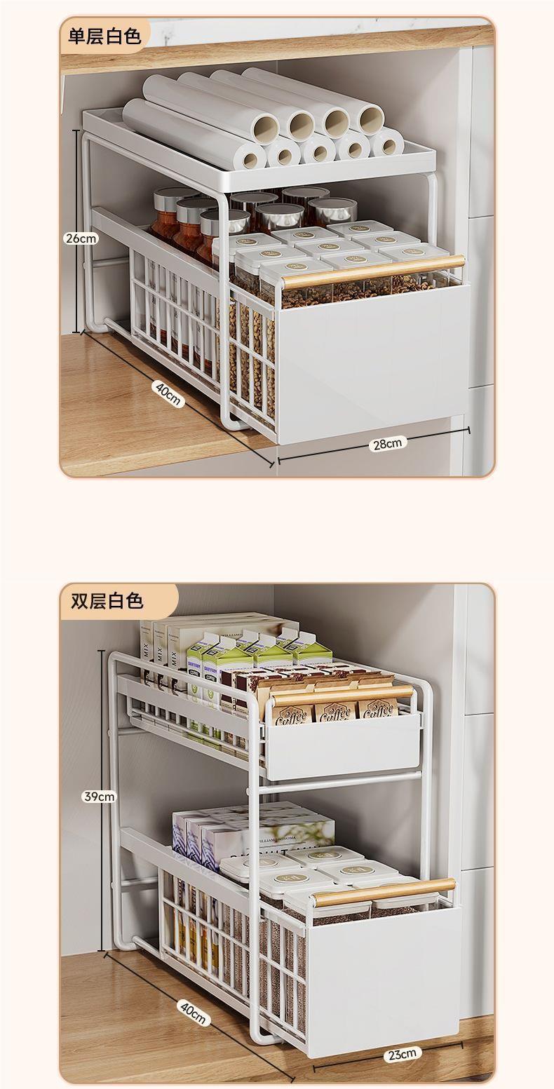 주방 싱크대 카운터 탑 스토리지 랙 레이어드 캐비닛 랙 풀아웃 조정 가능한 랙 내장 푸시 풀 바구니 보관