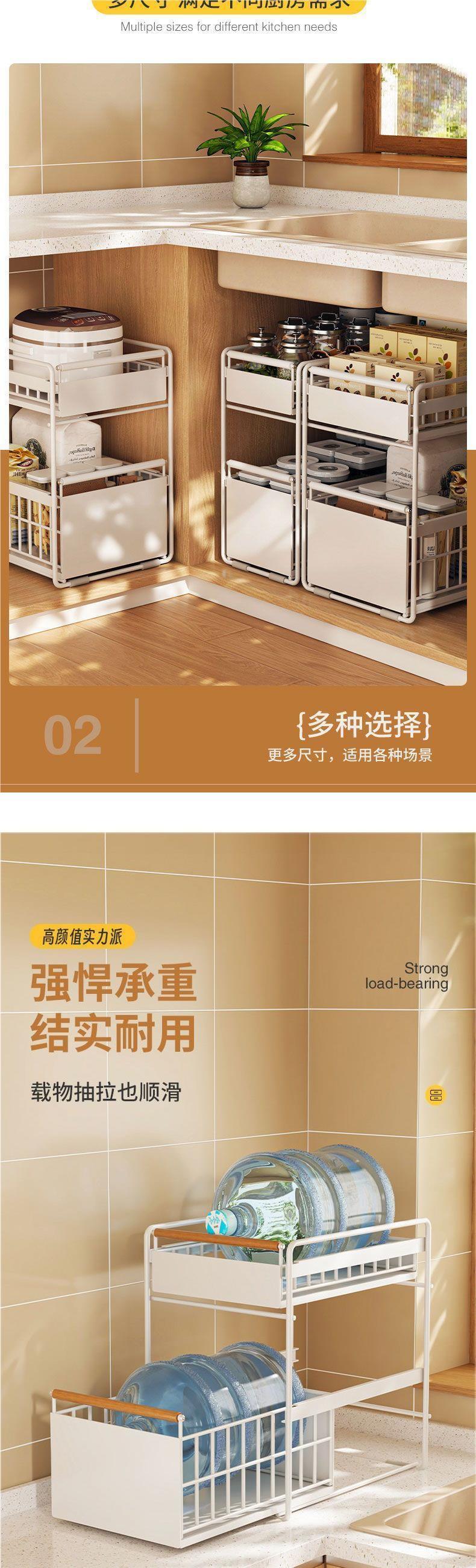 주방 싱크대 카운터 탑 스토리지 랙 레이어드 캐비닛 랙 풀아웃 조정 가능한 랙 내장 푸시 풀 바구니 보관스토어 가기