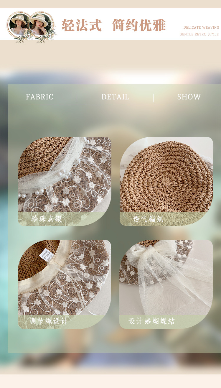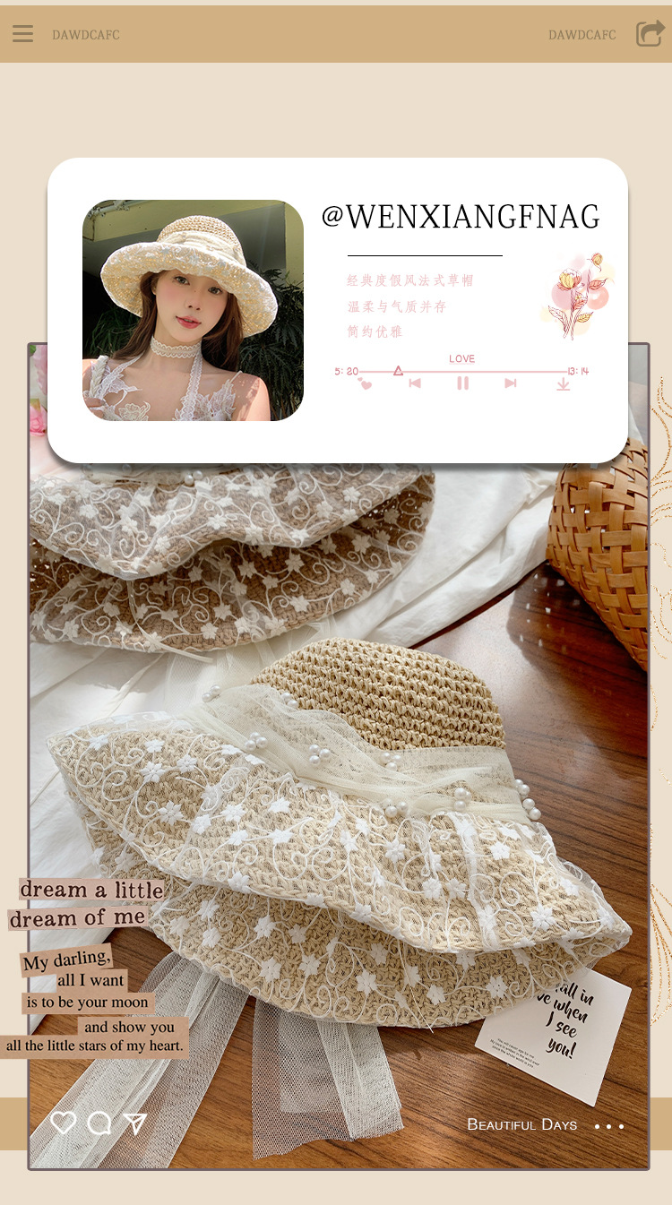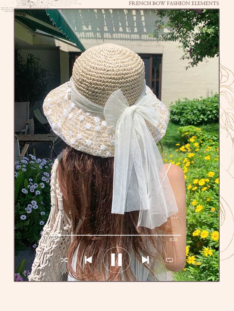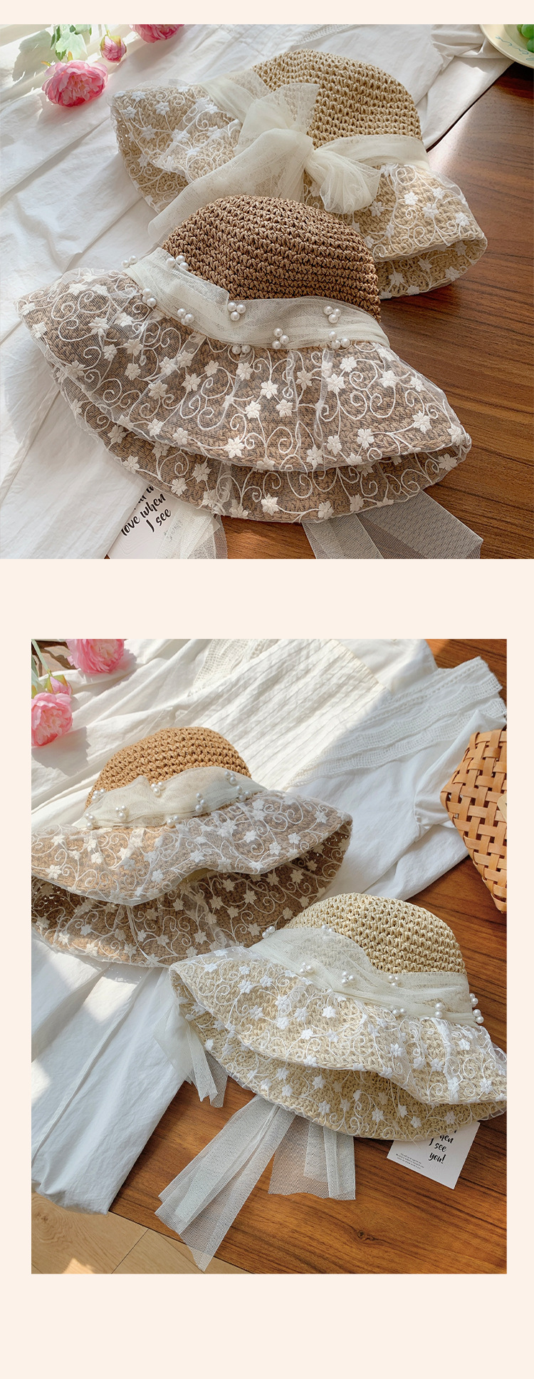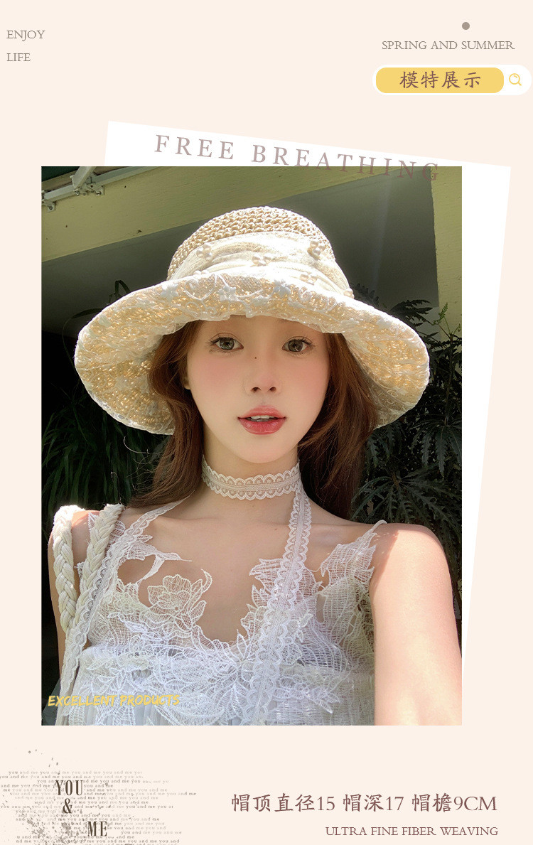 레이스 진주 짠 어부 모자 여성의 봄과 여름 휴일 스타일 해변 모자 큰 가장자리 태양 보호 모자스토어 가기