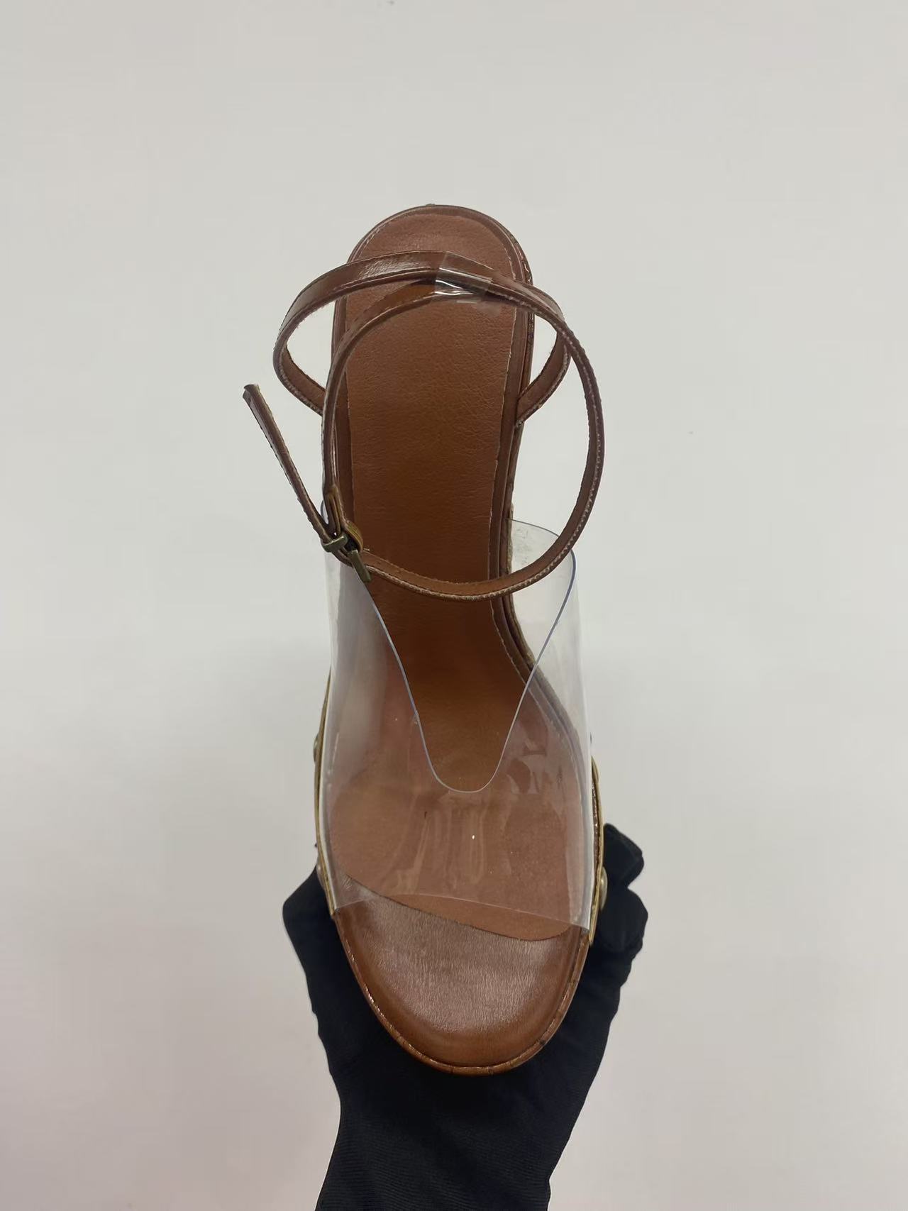 여성용 하이힐 두꺼운 굽 샌들 2025 새로운 대외 무역 두꺼운 밑창 나뭇결 플랫폼 샌들 금속 버클 샌들