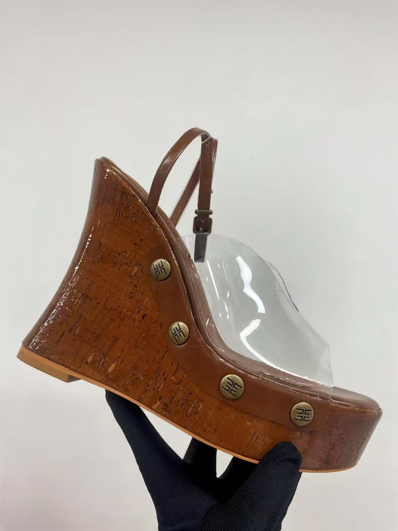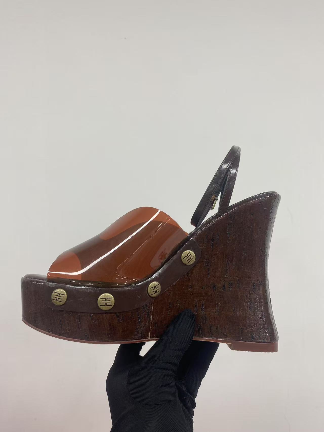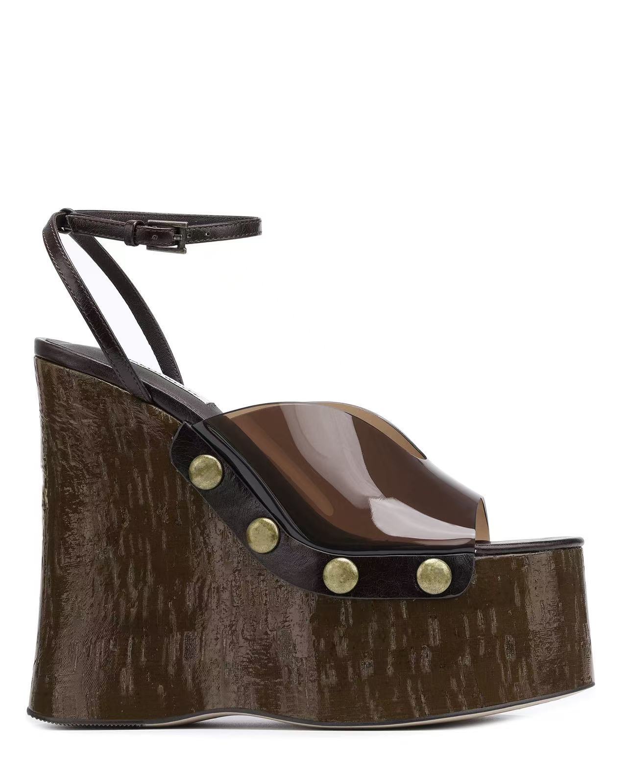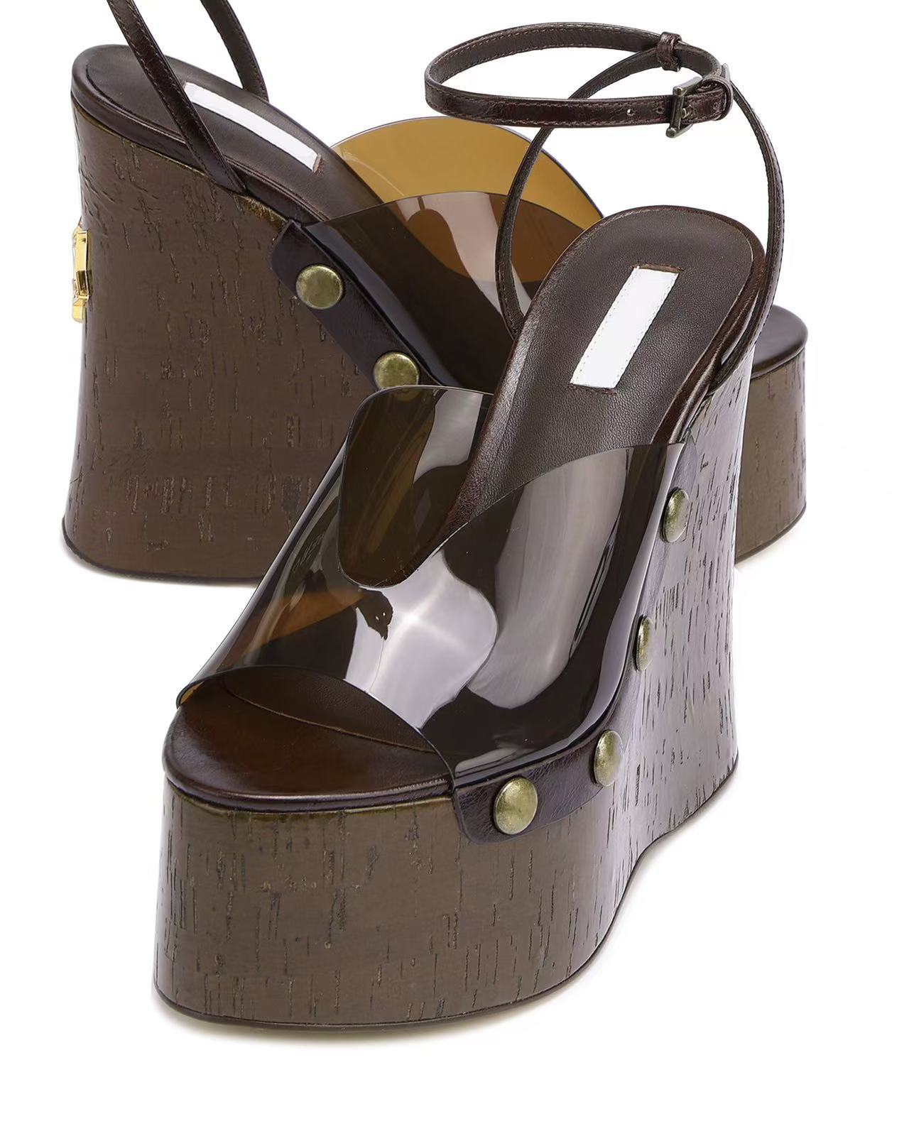 여성용 하이힐 두꺼운 굽 샌들 2025 새로운 대외 무역 두꺼운 밑창 나뭇결 플랫폼 샌들 금속 버클 샌들스토어 가기