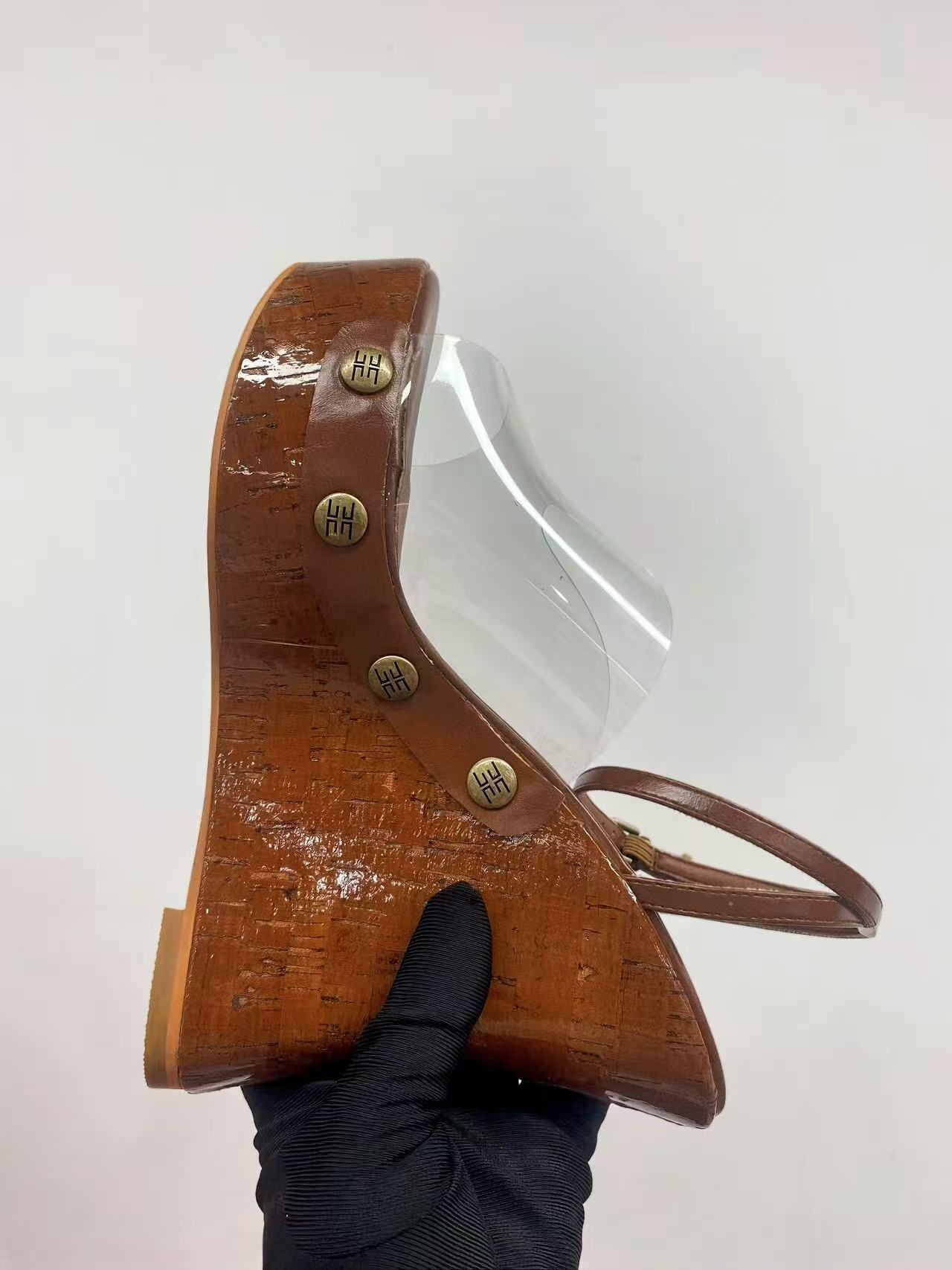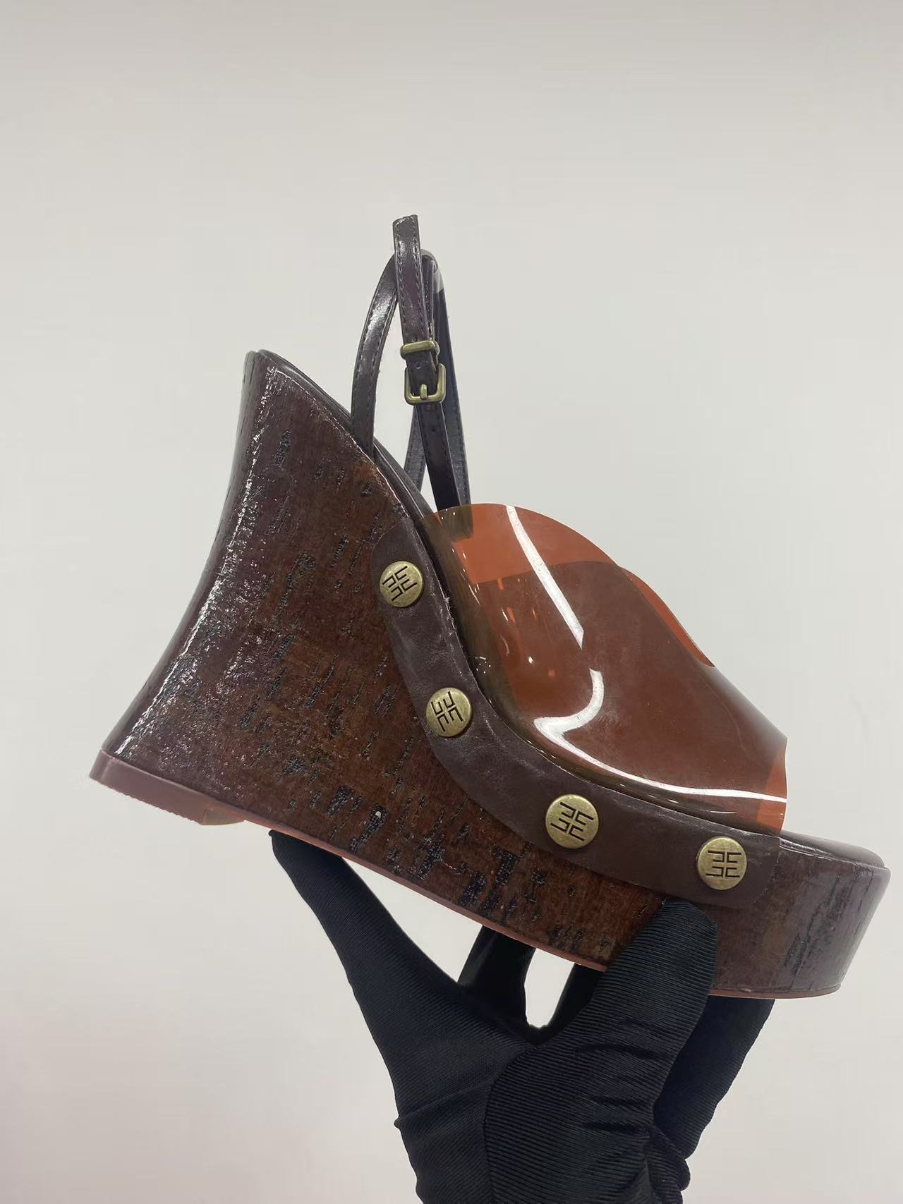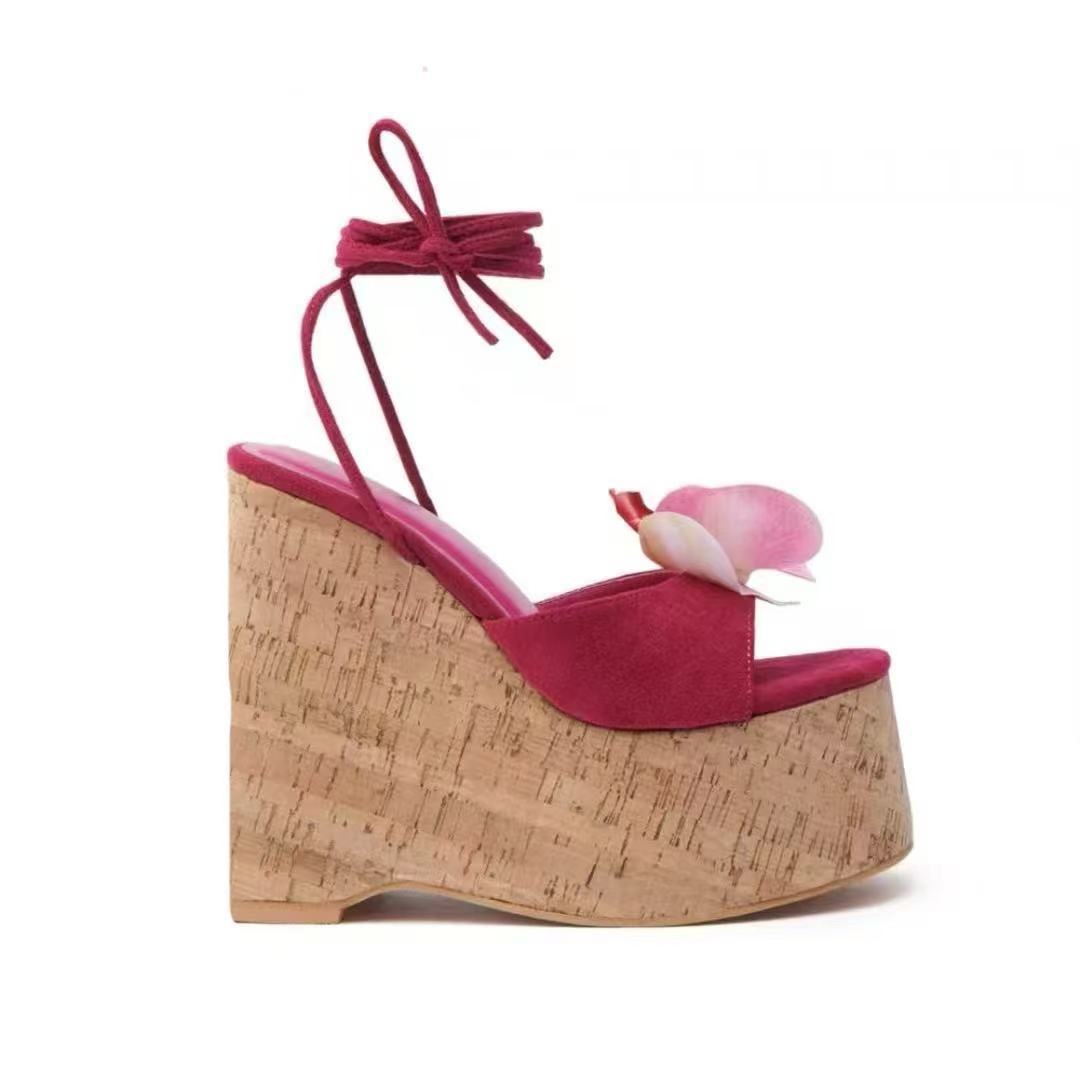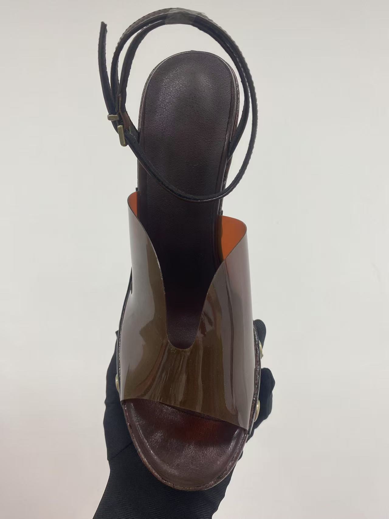 여성용 하이힐 두꺼운 굽 샌들 2025 새로운 대외 무역 두꺼운 밑창 나뭇결 플랫폼 샌들 금속 버클 샌들스토어 가기