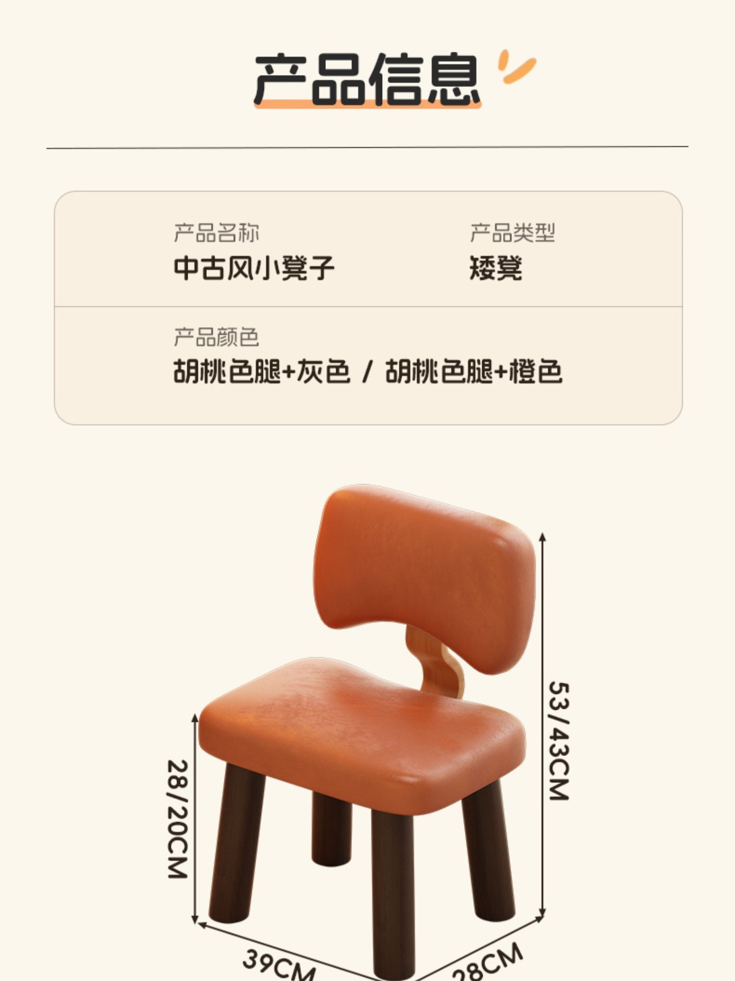 • [일체형 등받이 의자] 30*30*40CM