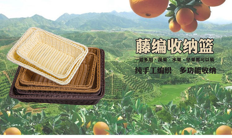 과일 바구니 저장 바구니 일본식 등나무 트레이 직사각형 플라스틱 빵 바구니 가정용 야채 바구니 거실 스낵 트레이