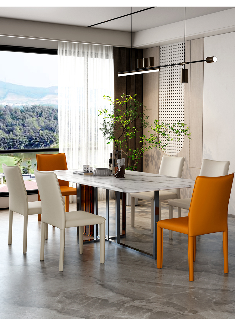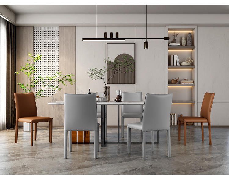 이탈리아 빛 럭셔리 홈 다이닝 의자 레스토랑 호텔 현대 간단한 스태킹 가능한 등받이 의자 안장 가죽 식탁 의자