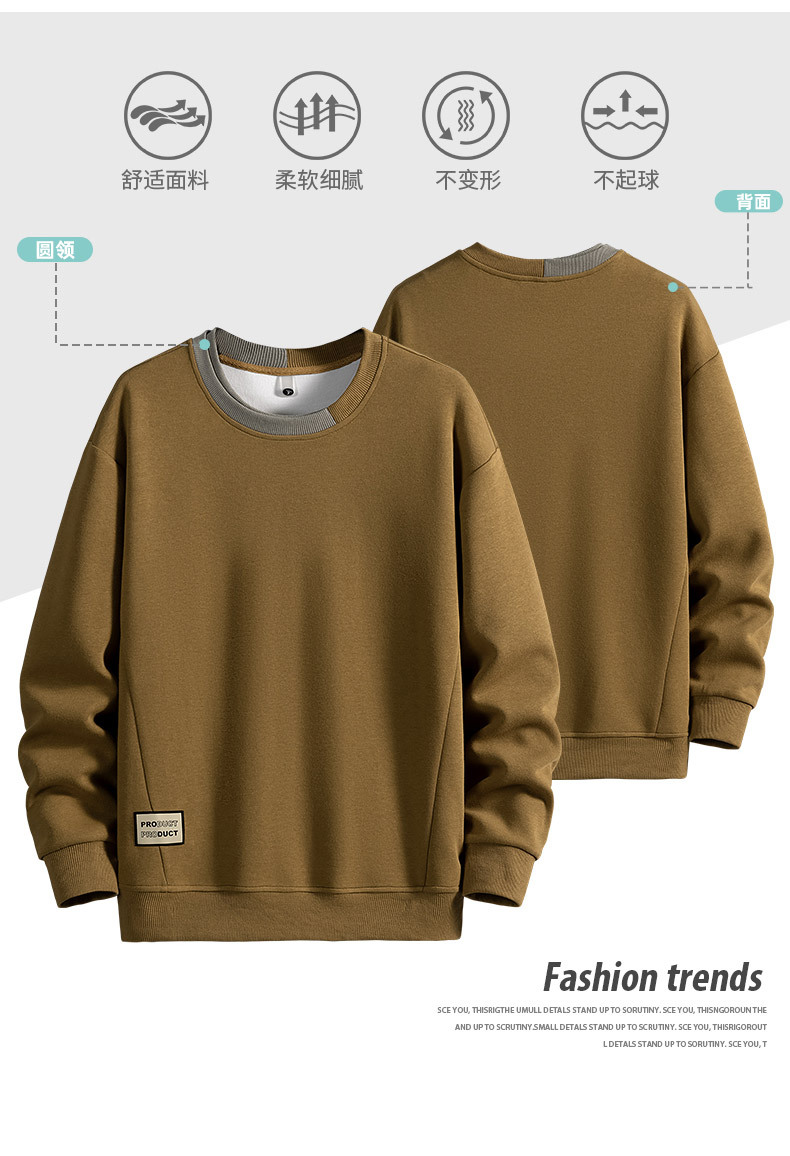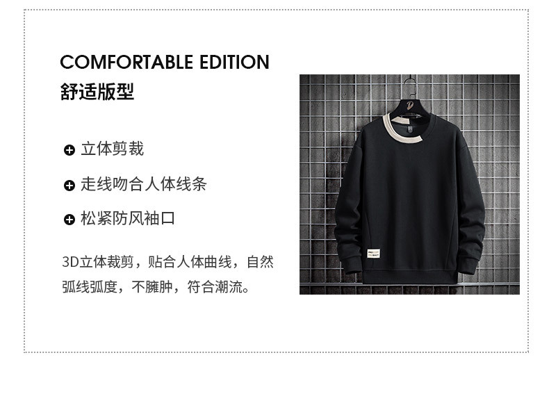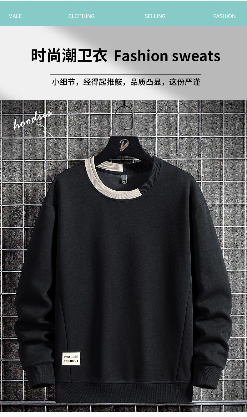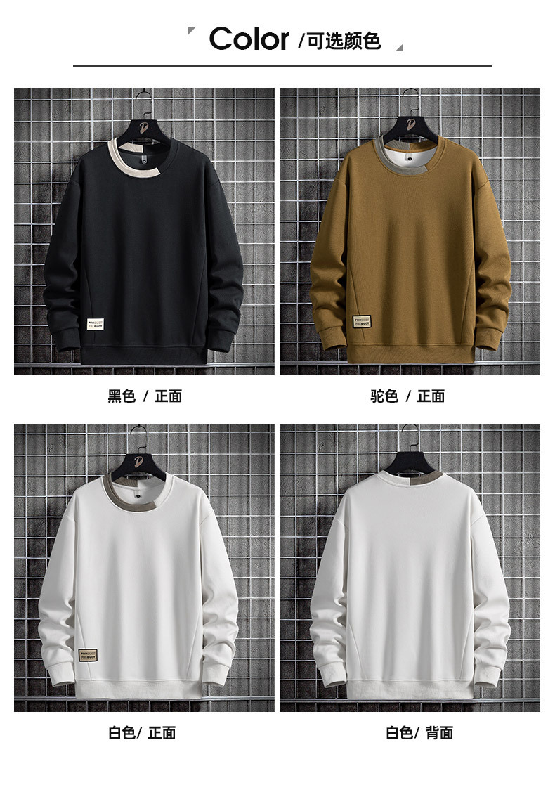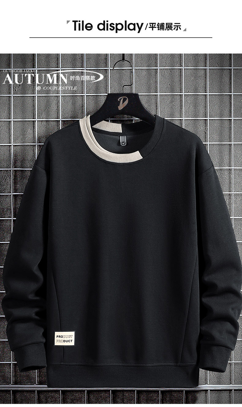 봄과 가을 트렌디 한 남성 패션 스티칭 크루 넥 스웨트 플러스 사이즈 플러스 뚱뚱한 느슨한 스포츠 캐주얼 패션 풀오버 스웨트 셔츠