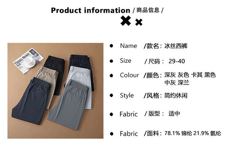 무료 배송 엔티티 남성용 바지 여름 얇은 아이스 실크 비즈니스 캐주얼 드레이피 플러스 사이즈 스트레이트 남성용 빠른 드라이 남성용 바지스토어 가기