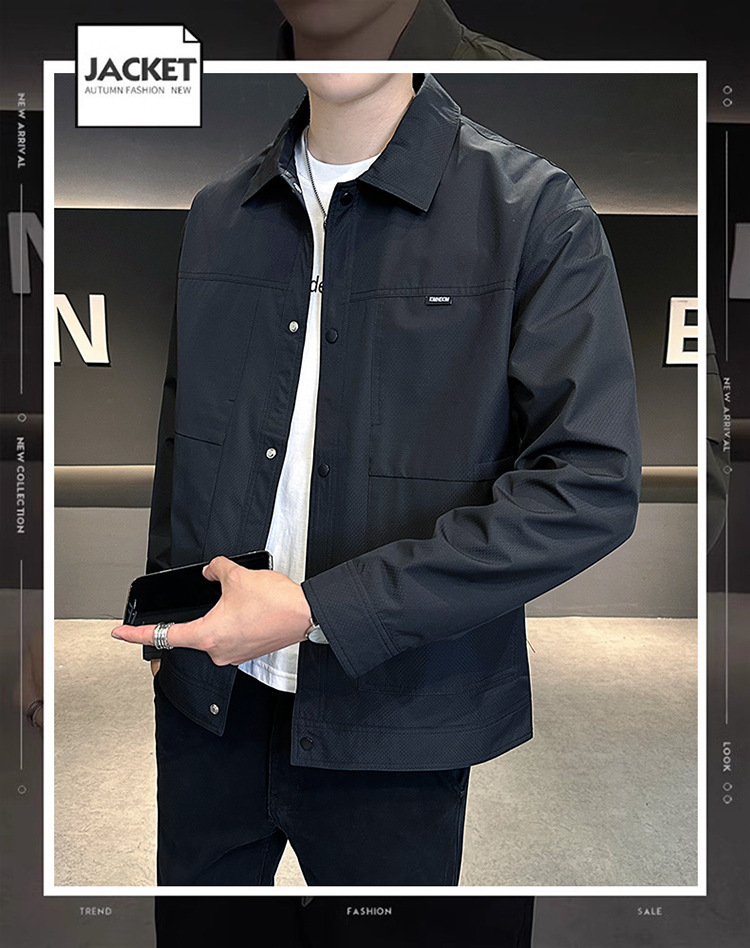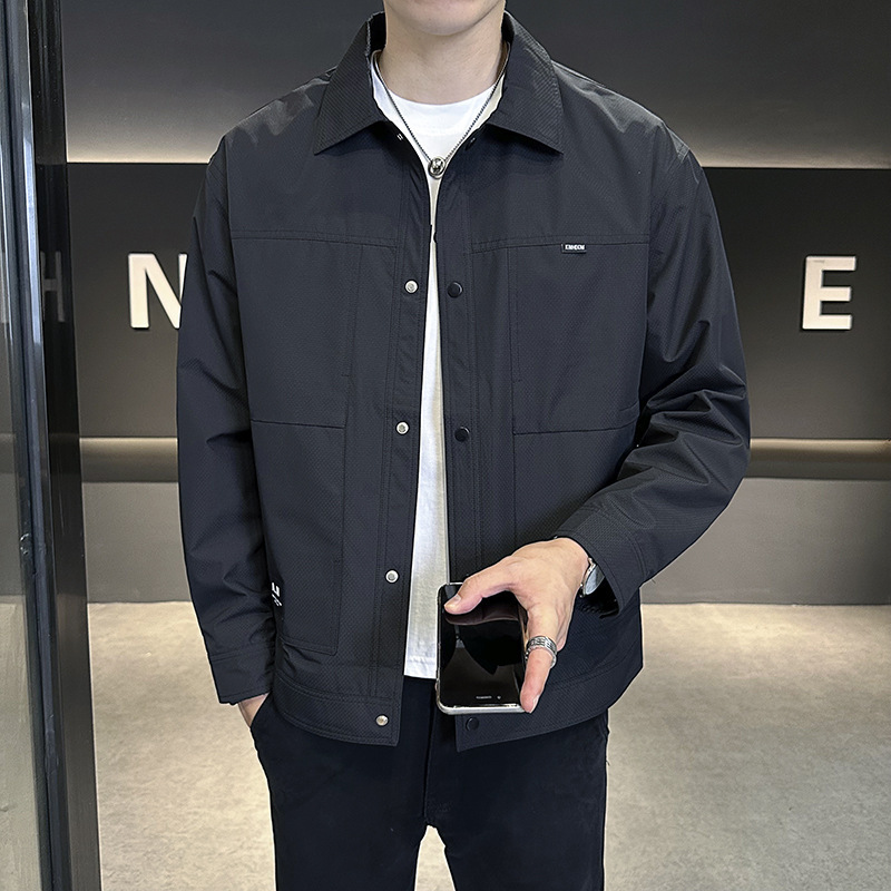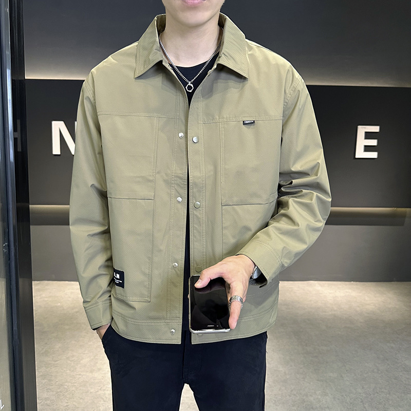 무료 배송 2025 봄 새로운 남성 옷깃 작업 재킷 남성 패션 브랜드 올 매치 캐주얼 의류 패션 브랜드스토어 가기