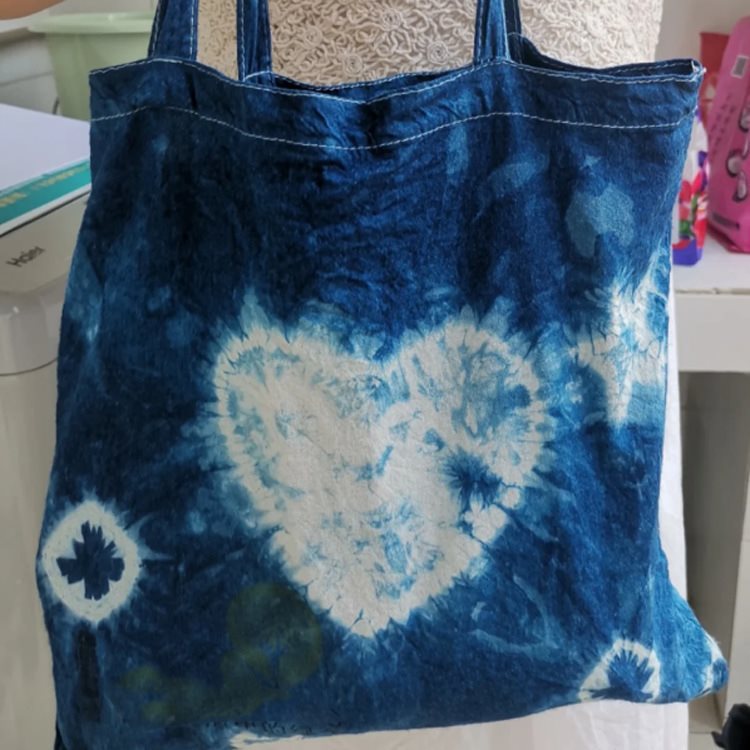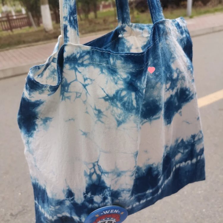 타이 다이 캔버스 백 퓨어 코튼 블랭크 대형 코튼 백 블루 썬 러빙 왁스 다이 번들 포켓 공장 염료 블루 자오 지우스토어 가기