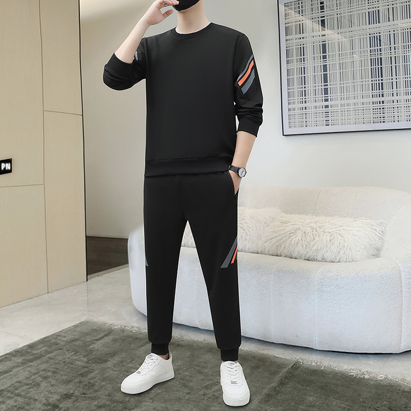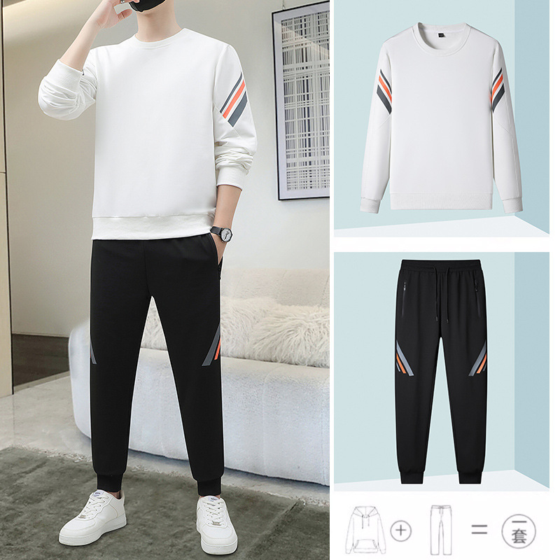우표 느슨한 조끼 세트 패션 남성 긴팔 티셔츠 2025 봄 새로운 남성 코트 바지 머리카락 세대스토어 가기