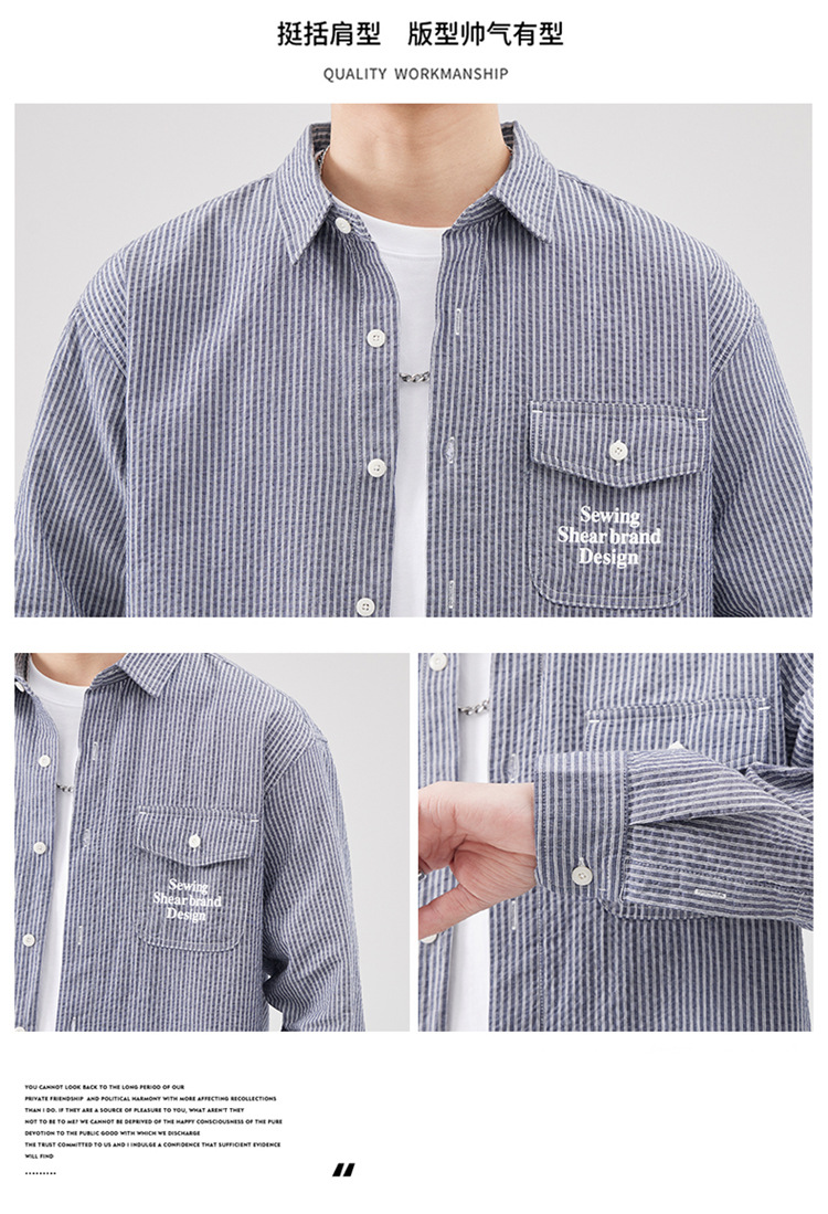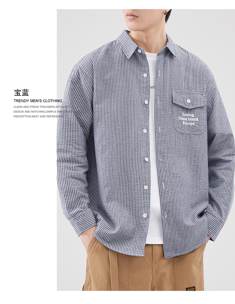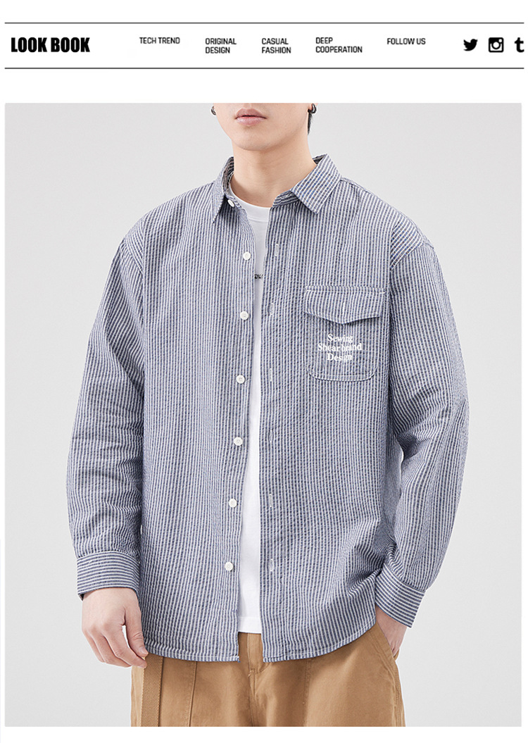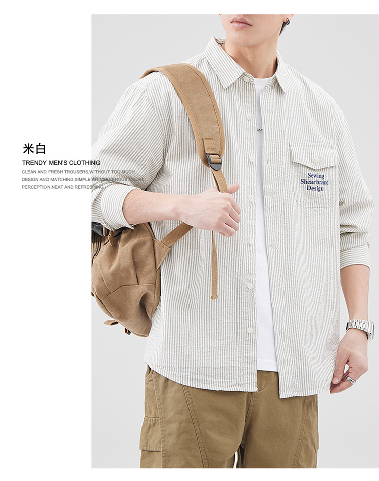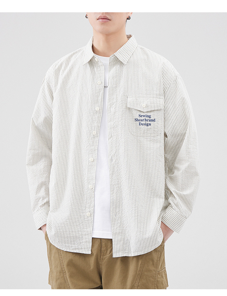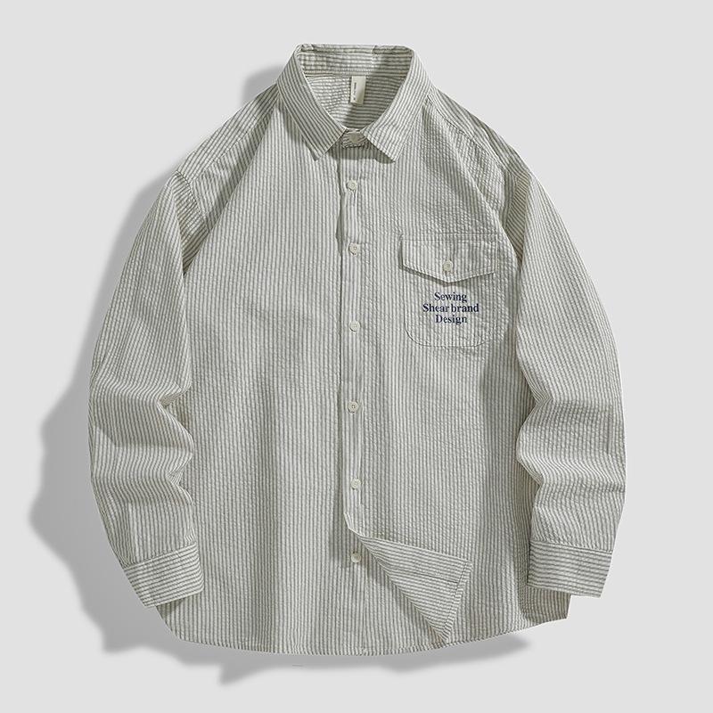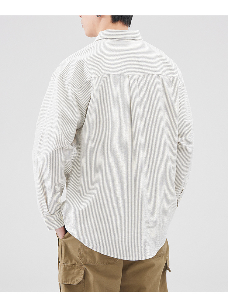 무료 배송 2025 새로운 스타일 일본 빈티지 남자의 느슨한 셔츠 봄과 여름 얇은 sized sauersucker 캐주얼 미국 셔츠