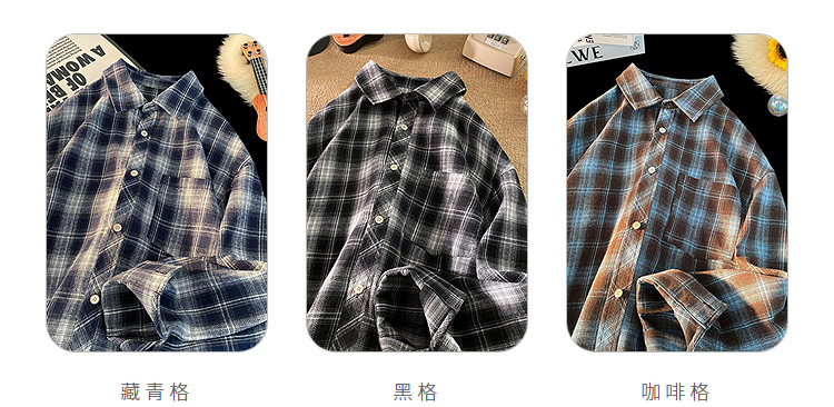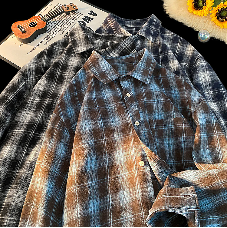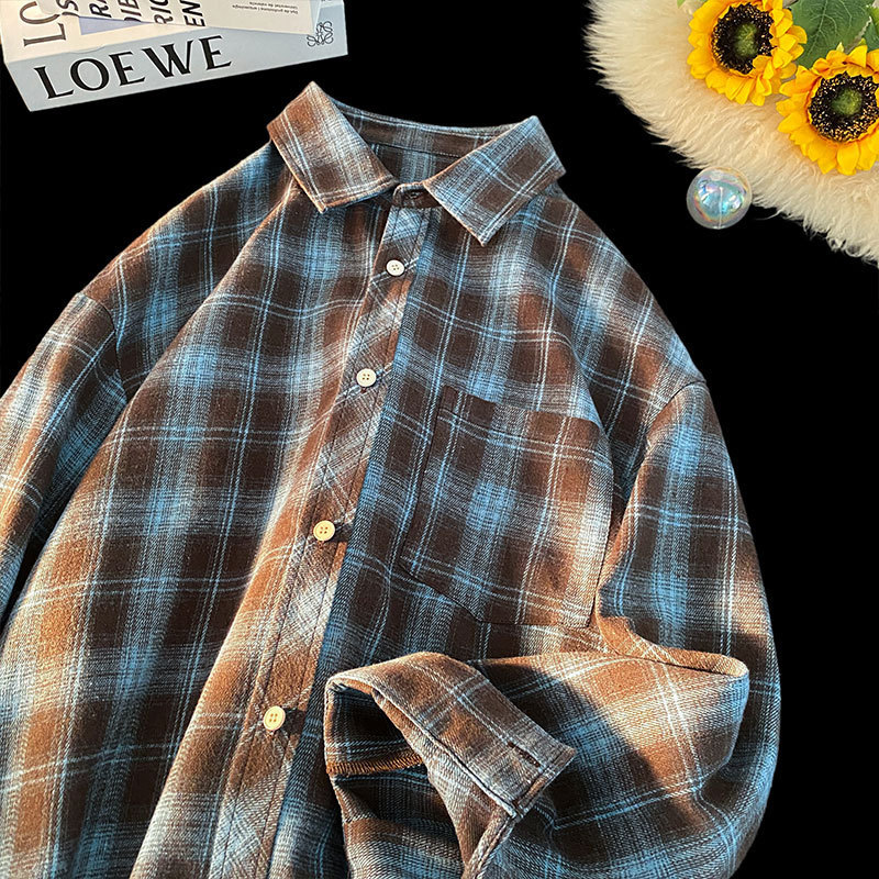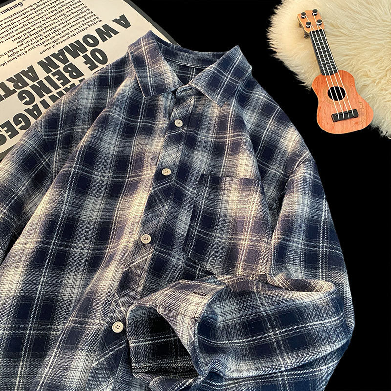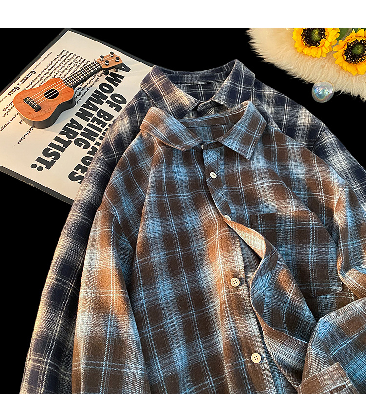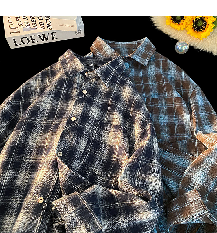 무료 배송 빈티지 봉제 셔츠 남자의 2025 봄과 가을 새로운 미국 캐주얼 느슨한 유행 긴 소매 셔츠 커플의 외부스토어 가기