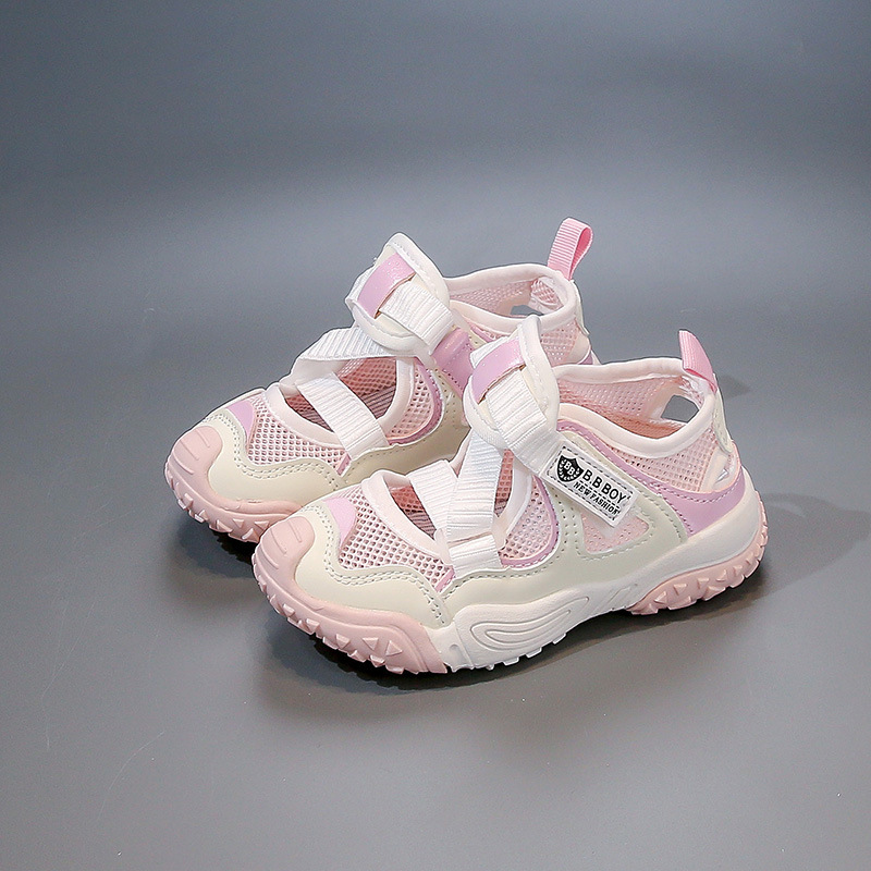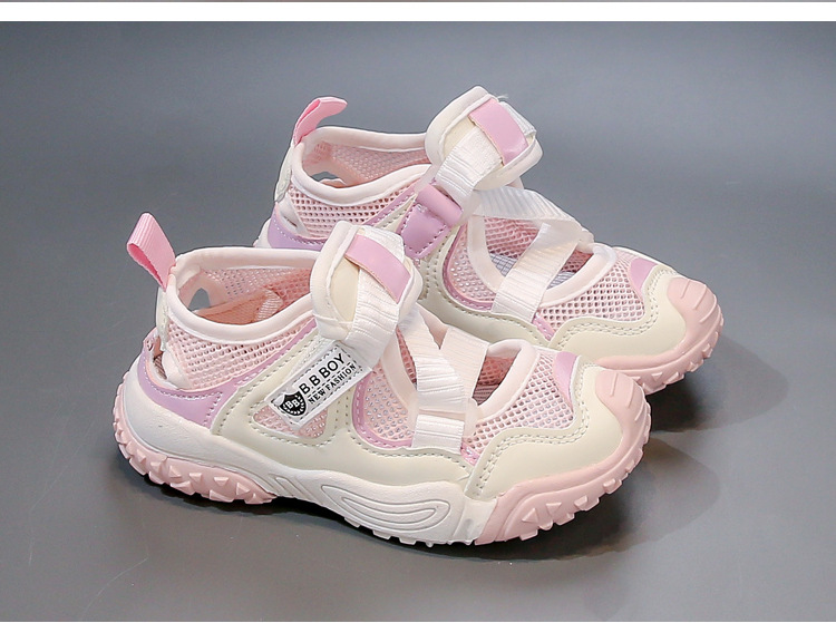 여자 샌들 2025 새로운 여름 어린이 싱글 메쉬 슈즈 할로우 통기성 빅 보이 걸스 바오 터우 스포츠 비치 슈즈