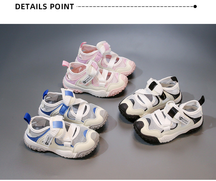 여자 샌들 2025 새로운 여름 어린이 싱글 메쉬 슈즈 할로우 통기성 빅 보이 걸스 바오 터우 스포츠 비치 슈즈스토어 가기