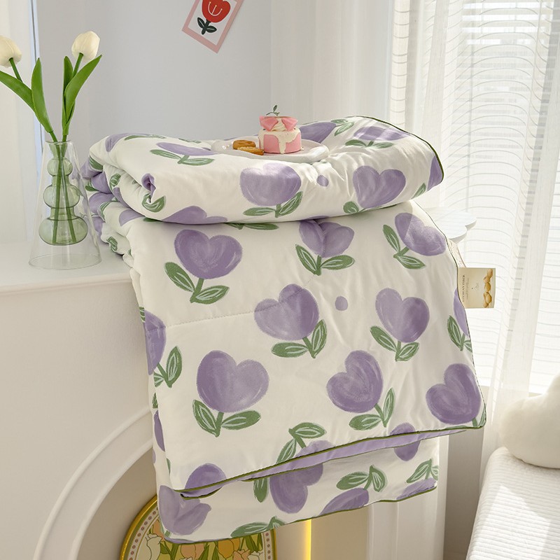작은 신선한 콩 섬유 여름 퀼트 기숙사 에어컨 퀼트 기계 세탁 가능한 선물 퀼트 부드러운 왁스 같은 통기성 인쇄 퀼트