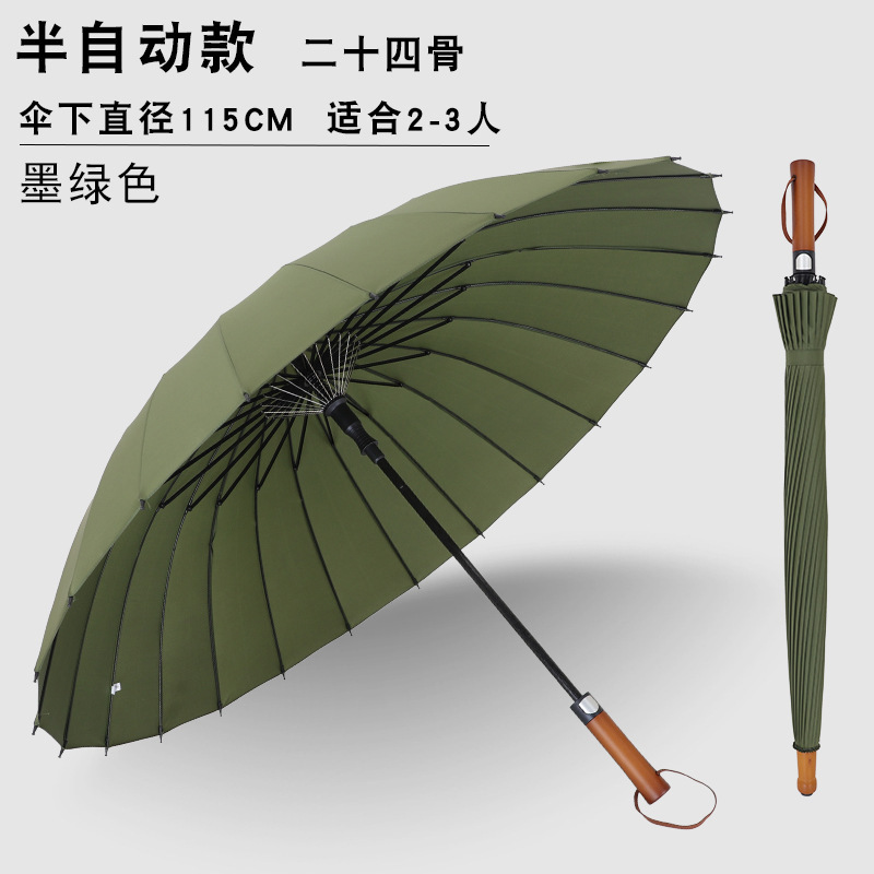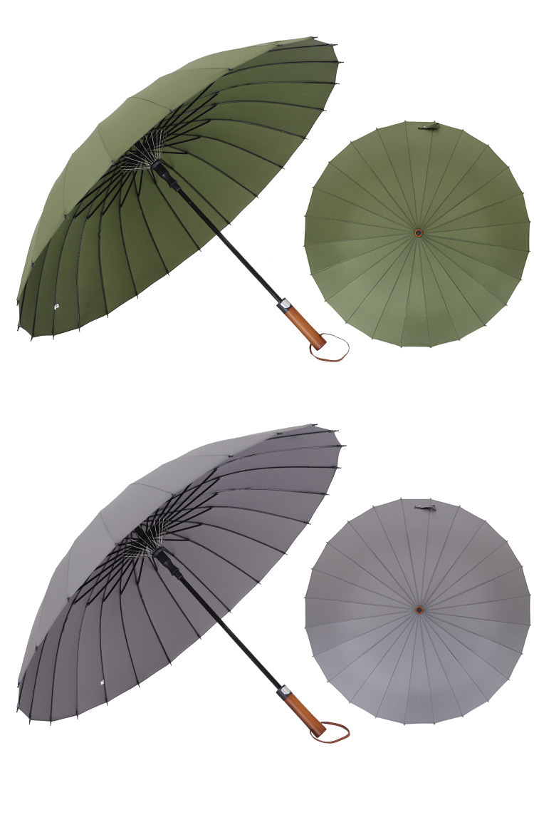 새로운 24 뼈 자동 오픈 나무 손잡이 스트레이트 우산 골프 우산 간단한 남성과 여성의 바람에 강한 우산 긴 손잡이 선물 우산