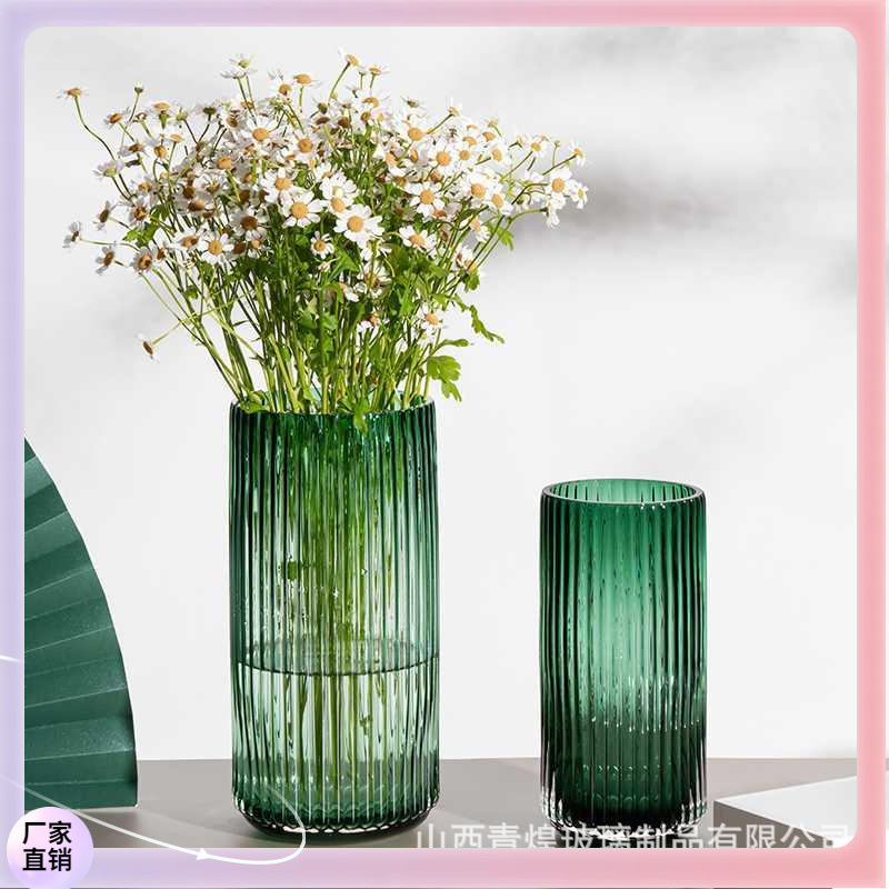 ✅ 북유럽 심플 모던 유리 꽃병, 투명한 수직 스트립, 직선형, 가벼운 고급 꽃꽂이, 거실 홈 데코레이션, 꽃꽂이
