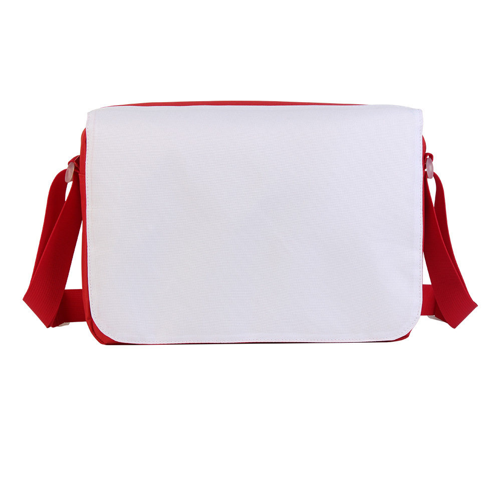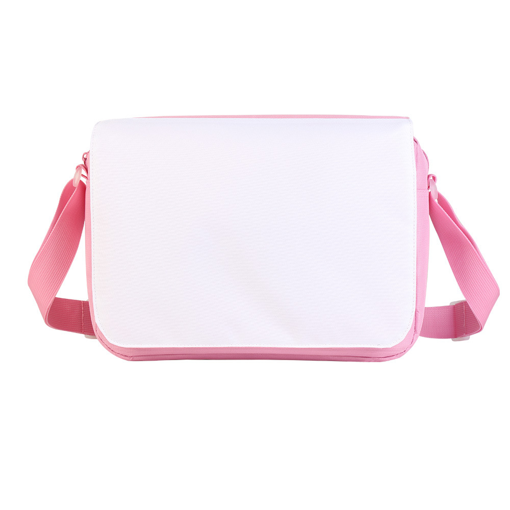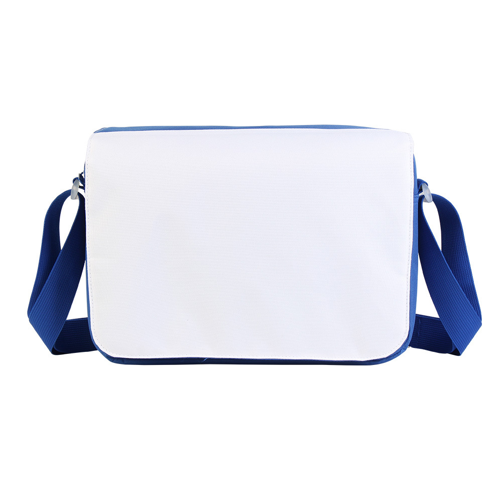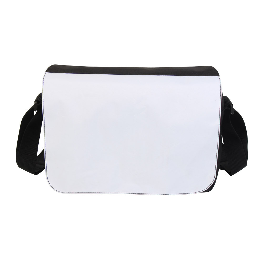 升华热转印空白大号斜挎包 邮差包,采用优质 600D 涤纶制成,耐用不易褪色,坚固轻便便携,有一个拉链主隔层,一个拉链中间隔层,两个小口袋,四个笔槽和一个挂钩,容量大且空间充足。