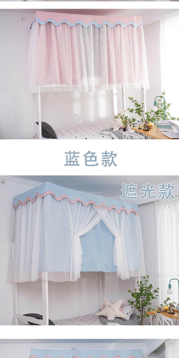 학생 기숙사 침대 커튼 모기장 통합 단색 두꺼운 강한 음영 커튼 기숙사 상부 침대 낮은 침대 핑크 커튼스토어 가기