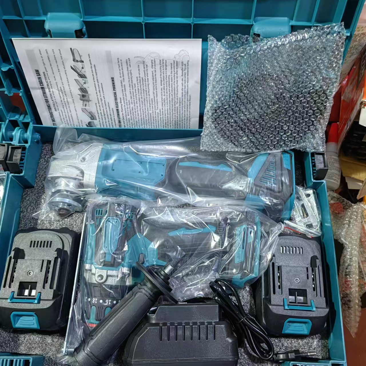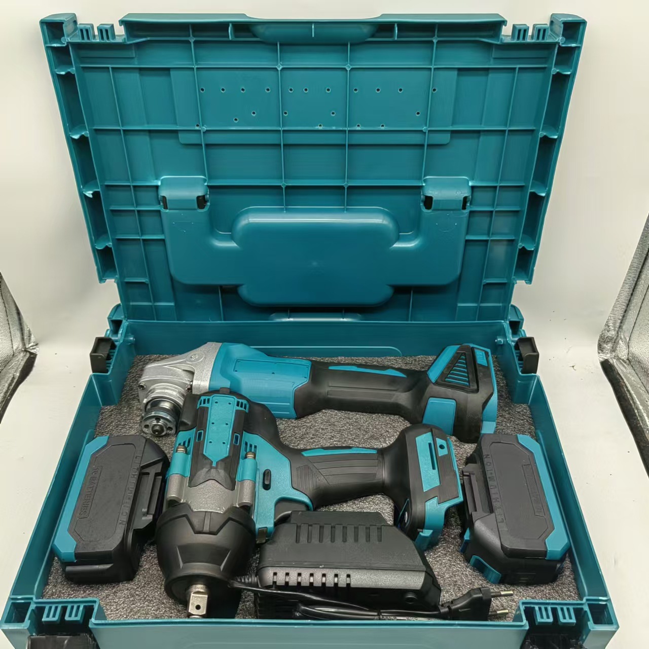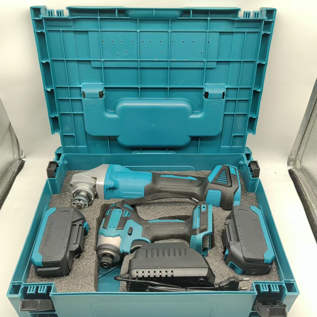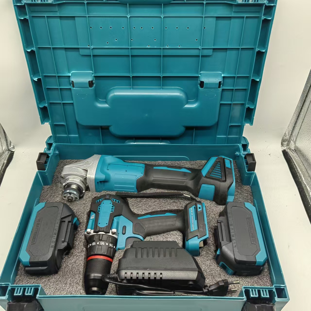 브러시리스 충전식 전기 해머 충격 드릴 앵글 그라인더 24 피스 전기 공구 전기 렌치를위한 국경 간 대외 무역스토어 가기