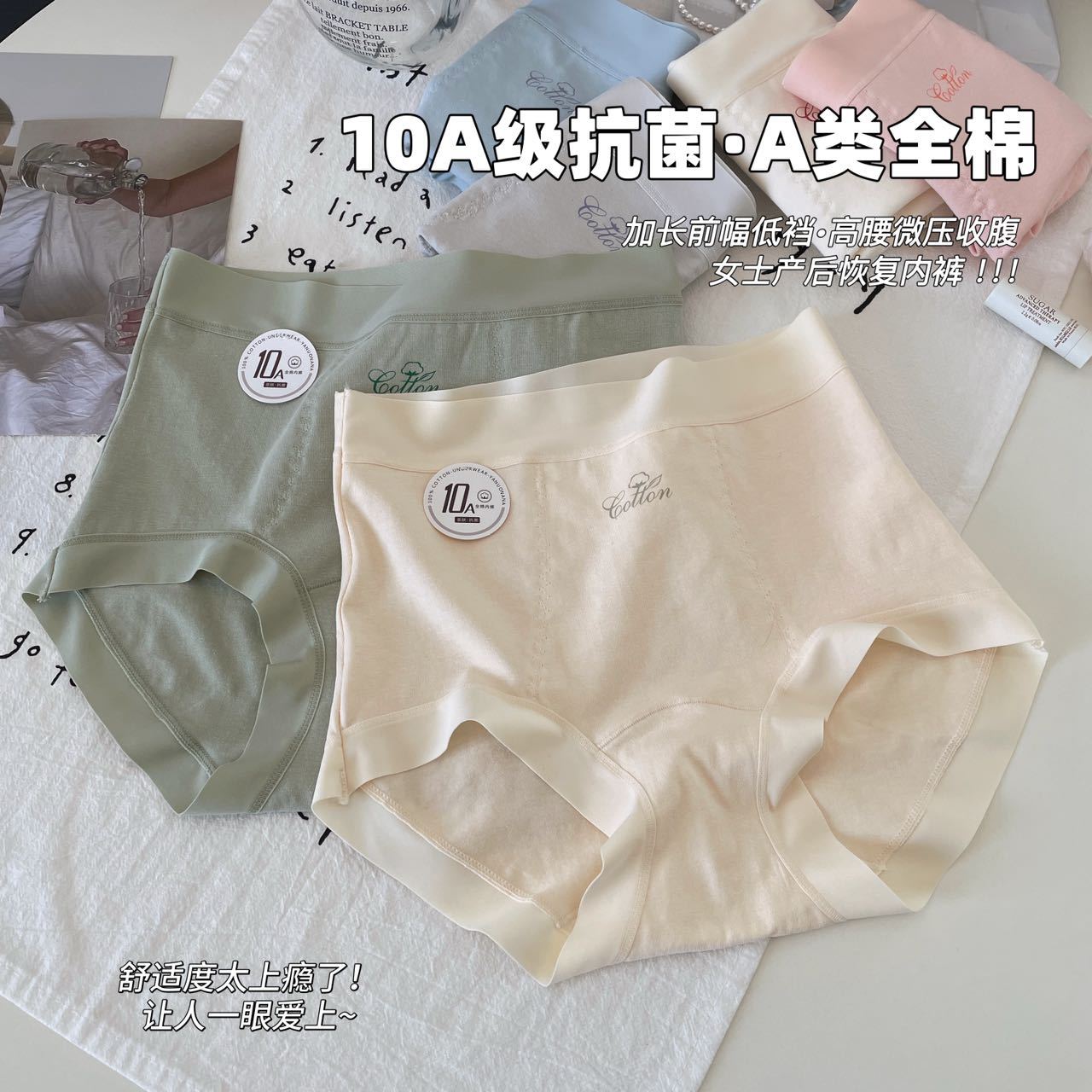 10A 항균성 면화 산후 높은 허리 마이크로 압력 복부 면 속옷 여성의 피부 친화적 인 통기성 고관절 속옷