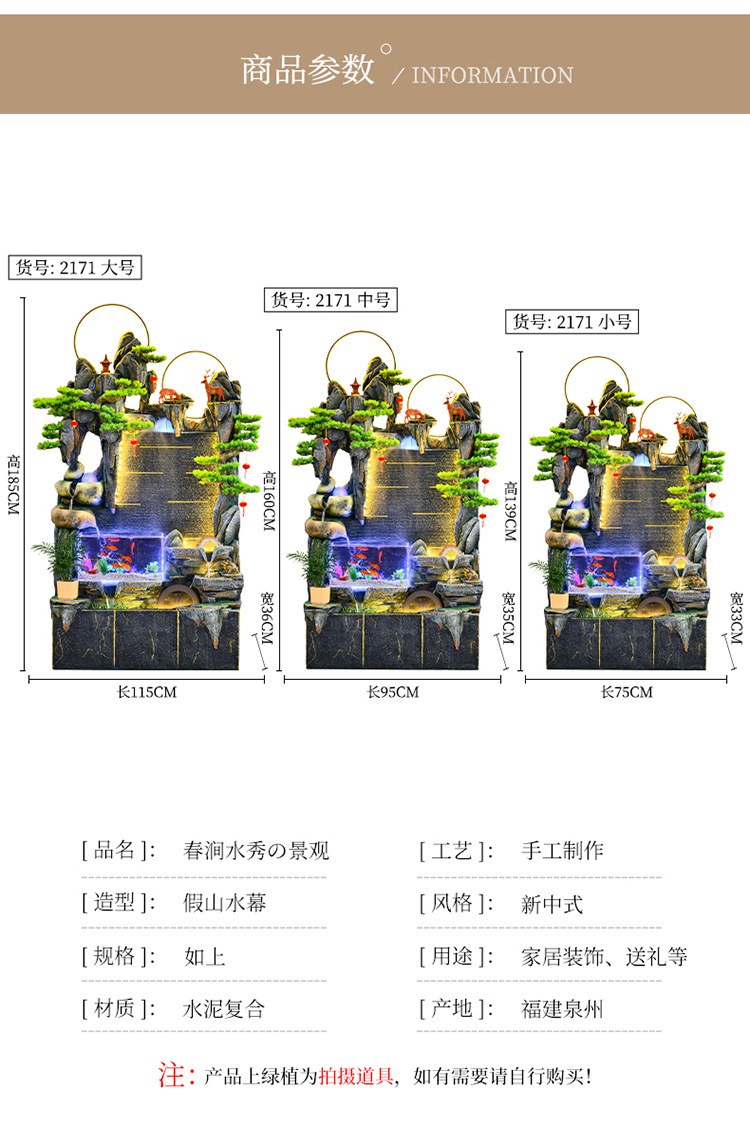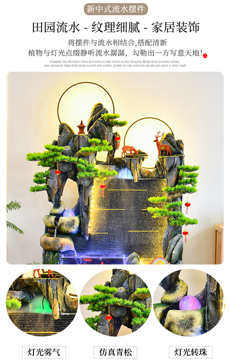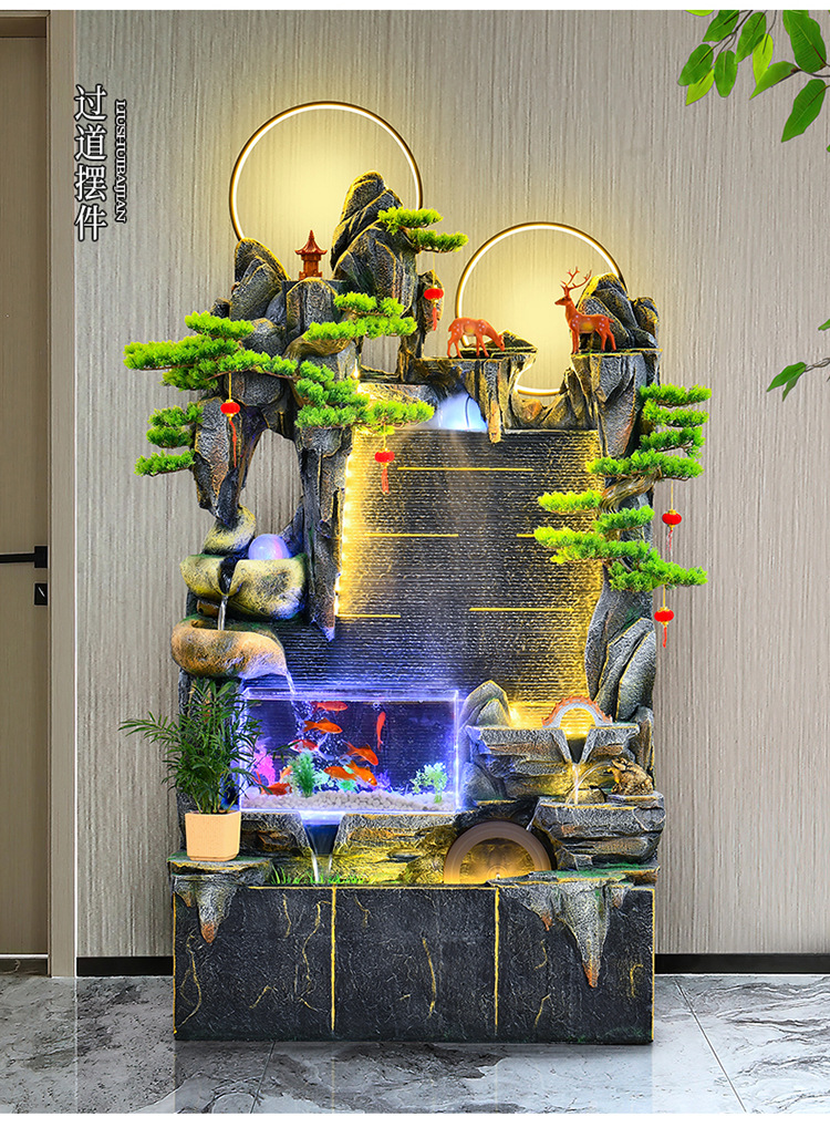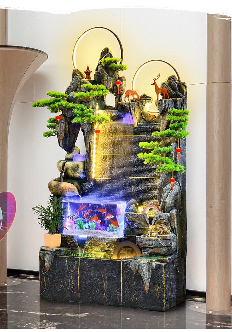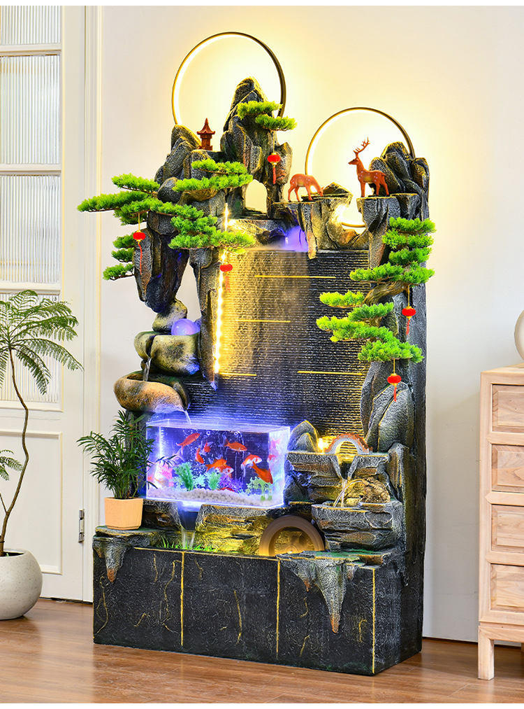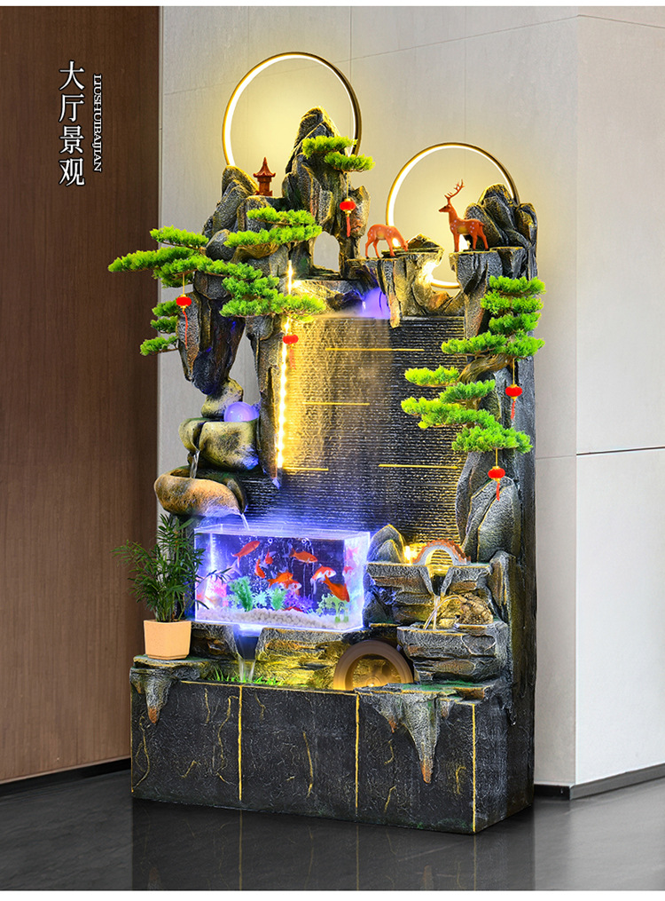 바위 흐르는 물 분수 장식품 순환 물 커튼 벽 현관 스크린 거실 사무실 장식 개방 행운의 물고기 탱크