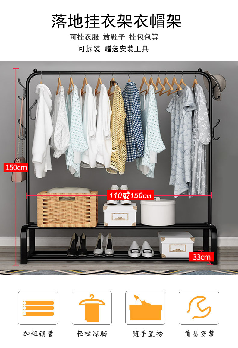 • ♪♪♪★★★♪♪♪★★★검정색 이중 기둥(옷을 걸고 신발 상자를 넣을 수 있음) 너비*높이 80*150cm♪♪♪★★★♪♪♪★
