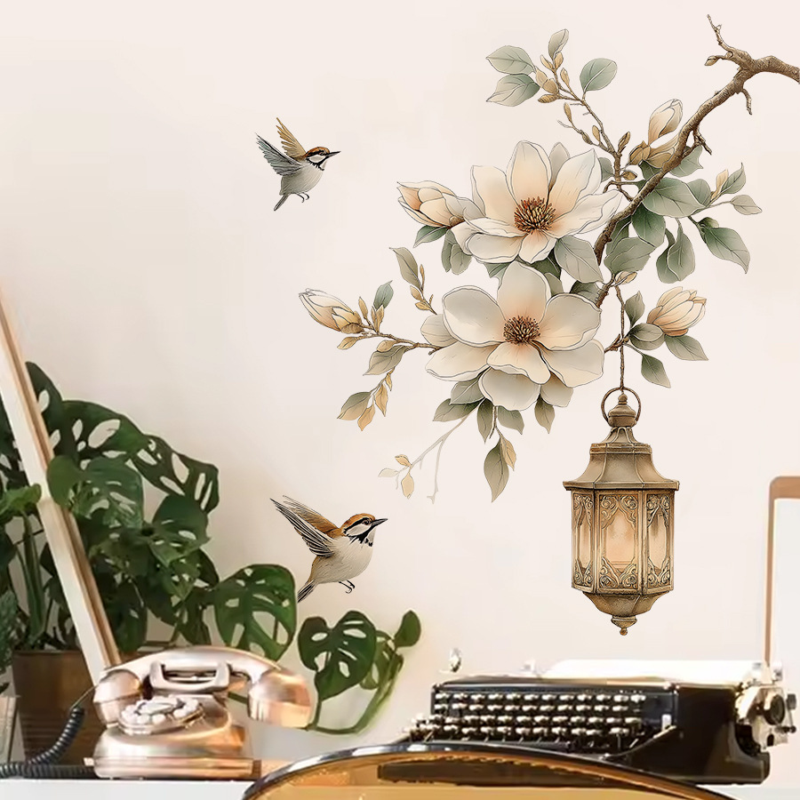 HS1242E 창조적 인 페인트 베고니아 참새 가로등 자체 접착 벽 스티커 침실 거실 기숙사 장식 스티커