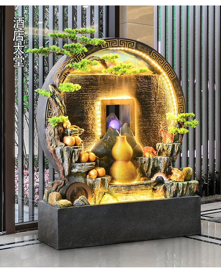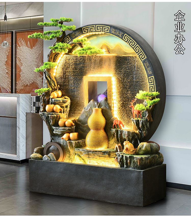 물 커튼 벽 흐르는 물 스크린 파티션 거실 물 시스템 순환 물 장식품 분수 물고기 연못 풍경 안뜰 정원 레이아웃