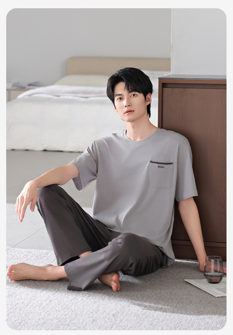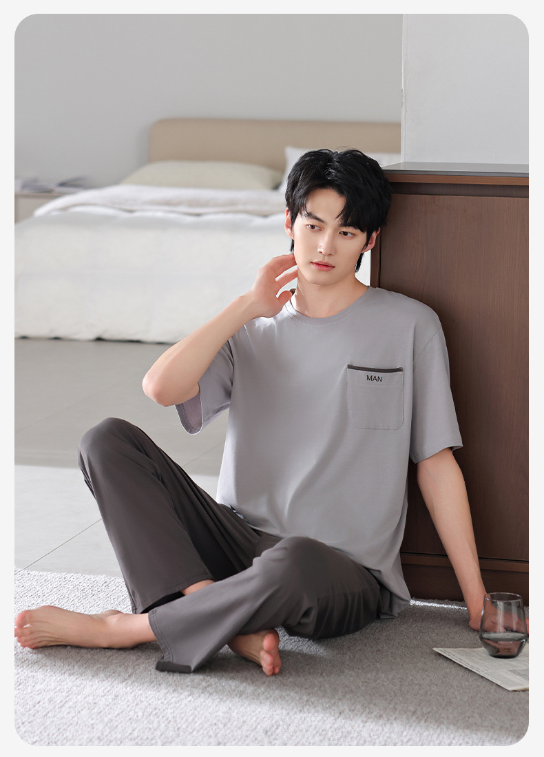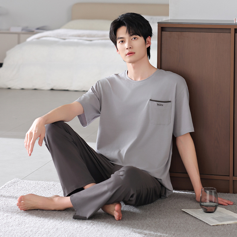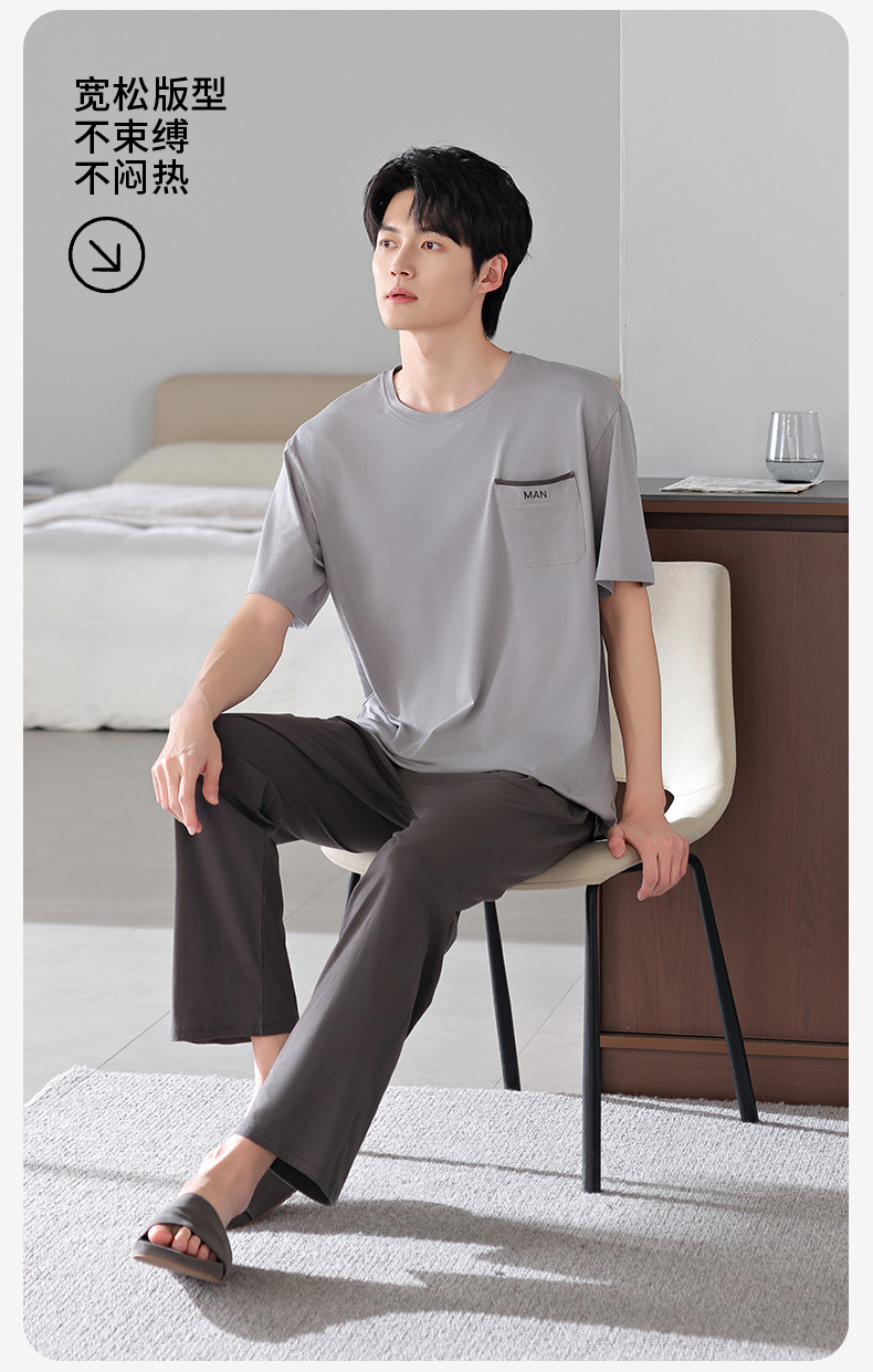 남자 잠옷 여름 반팔 바지 모달 아이스 실크 얇은 플러스 사이즈 캐주얼 여름 남자 홈 의류 세트스토어 가기