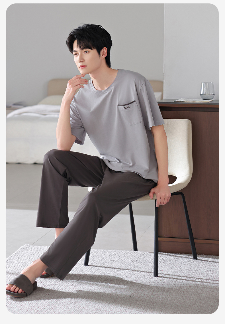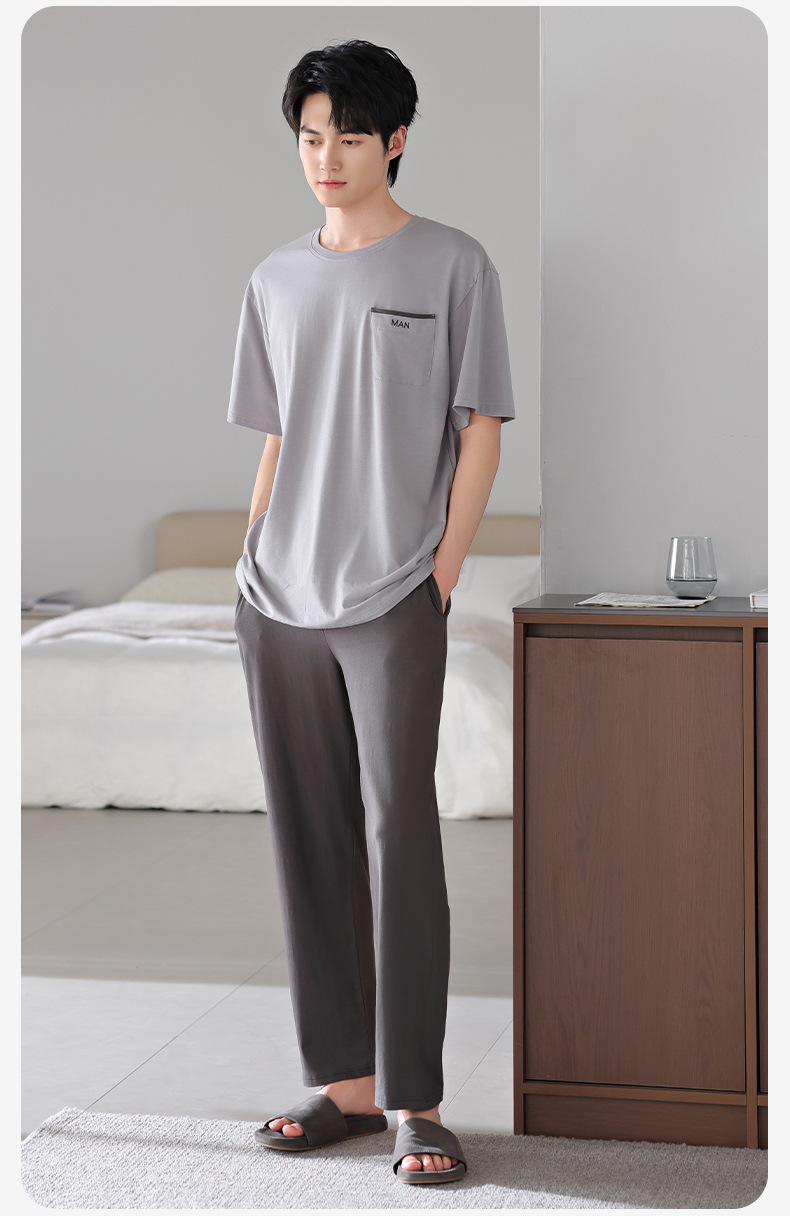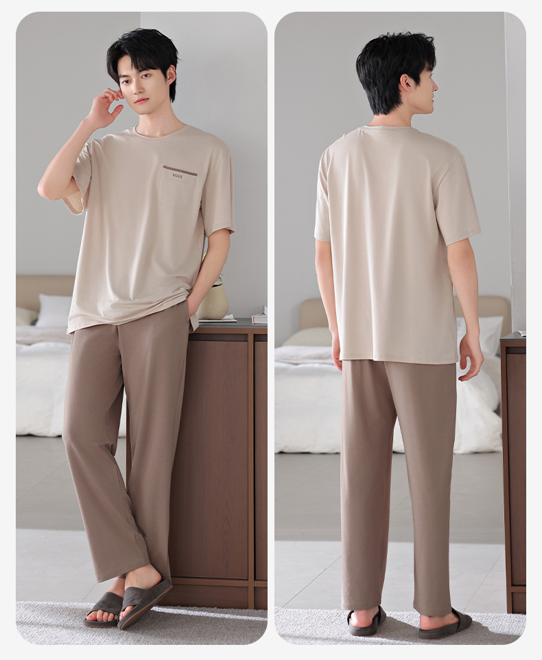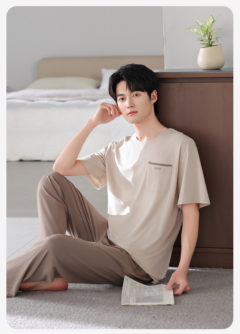 남자 잠옷 여름 반팔 바지 모달 아이스 실크 얇은 플러스 사이즈 캐주얼 여름 남자 홈 의류 세트스토어 가기