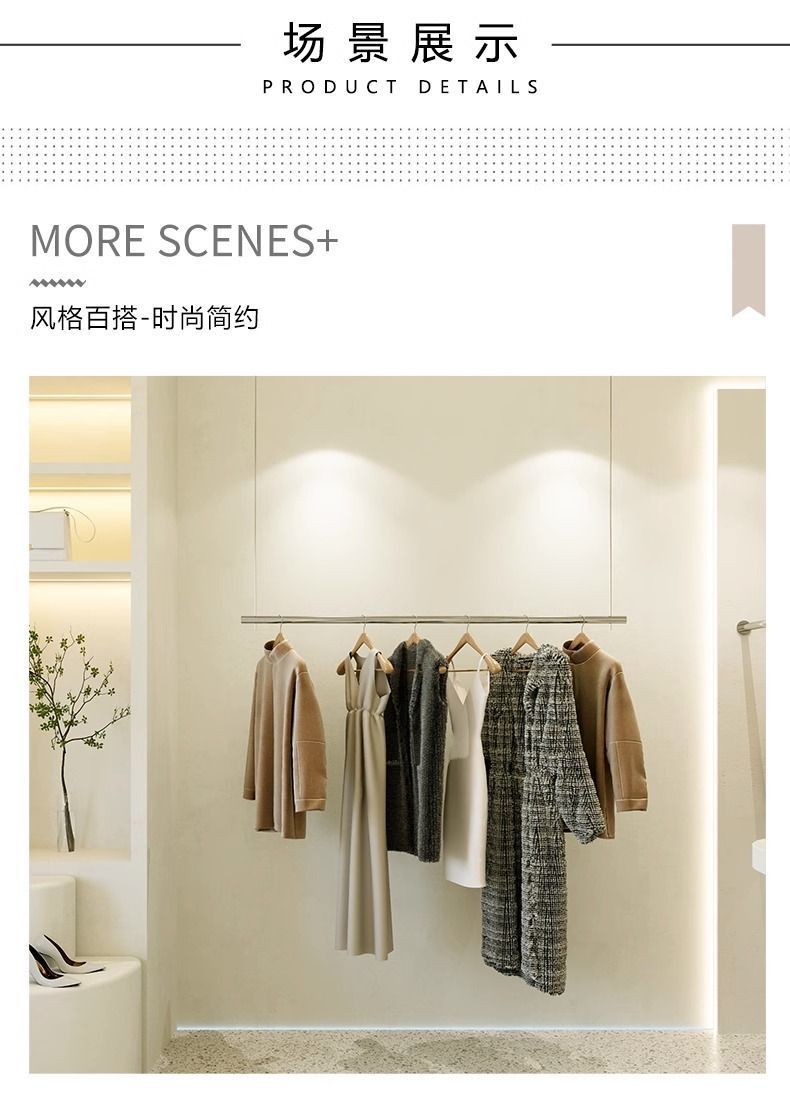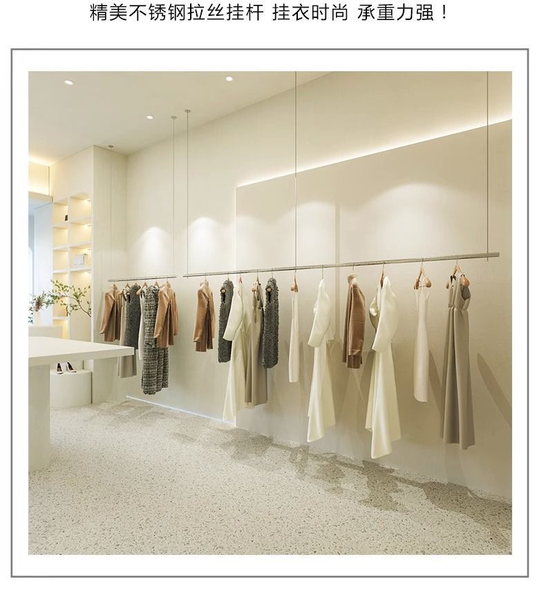 A8C 의류 매장 행거 인터넷 축하 스테인레스 스틸 로프 걸이 걸이 벽 높이 조정 옷걸이 실내 벽스토어 가기